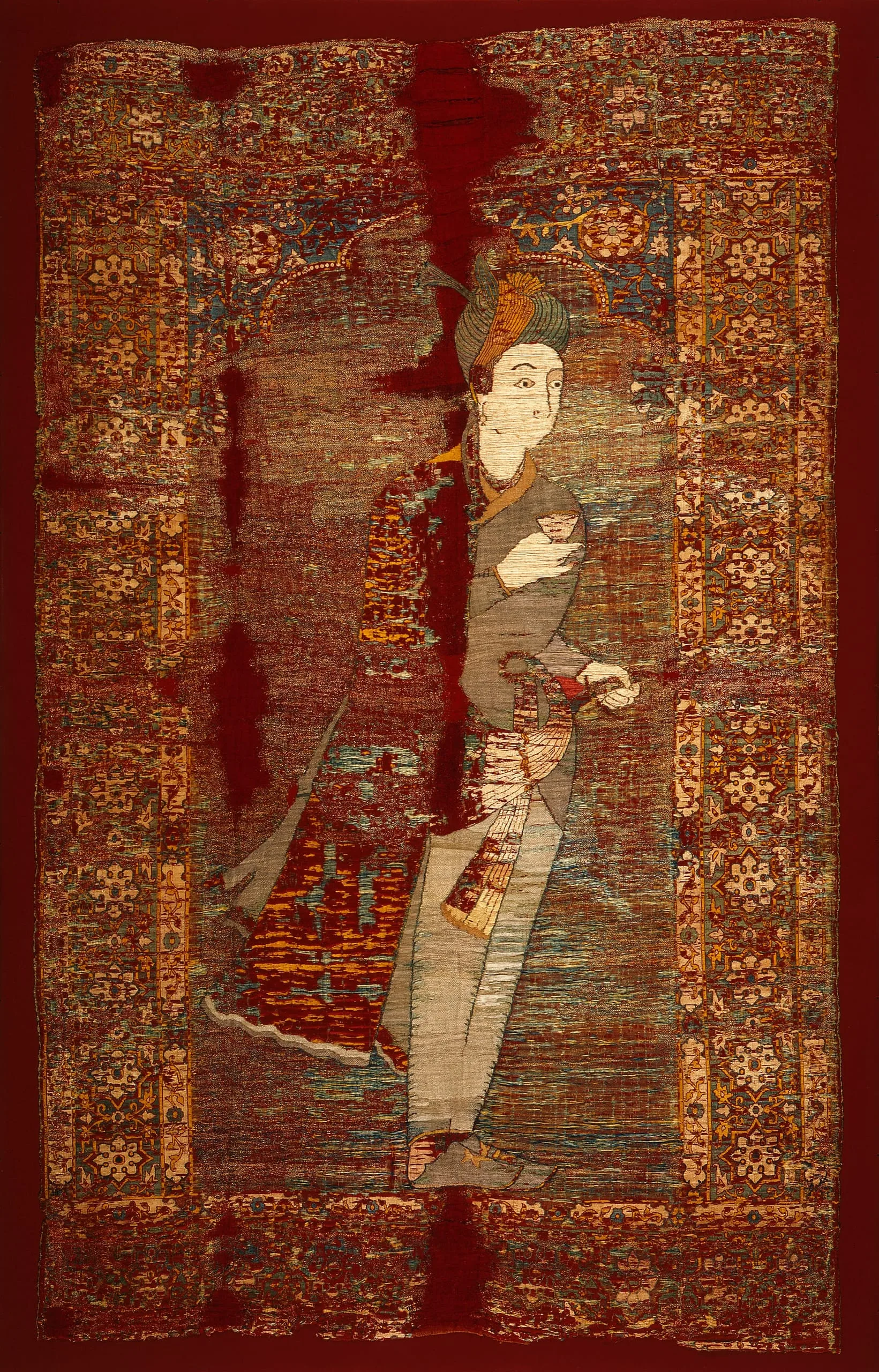 - Silk twill with supplementary weft patterning bound in satin (lampas)