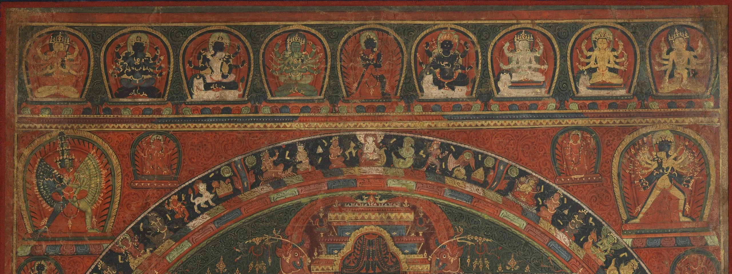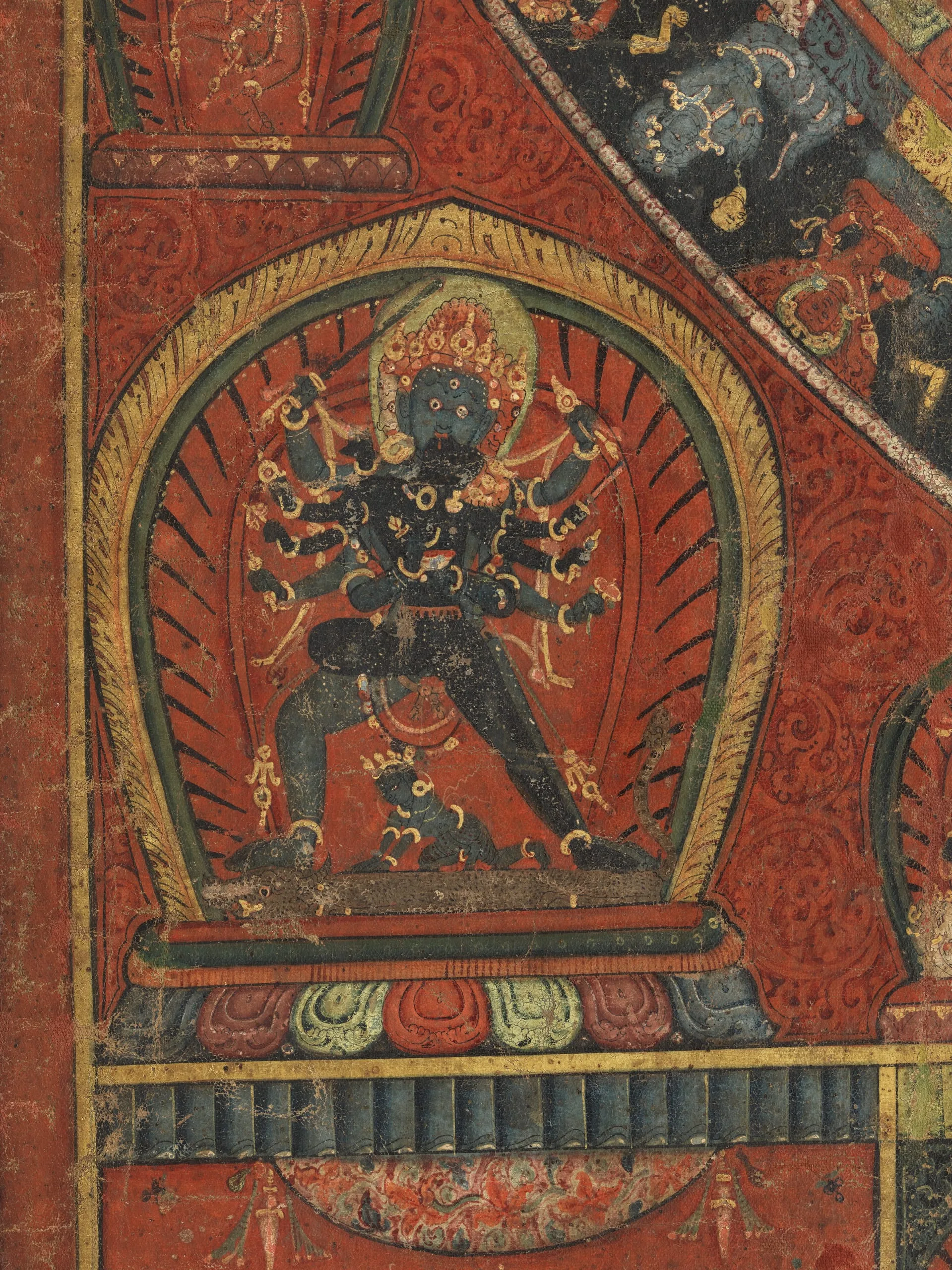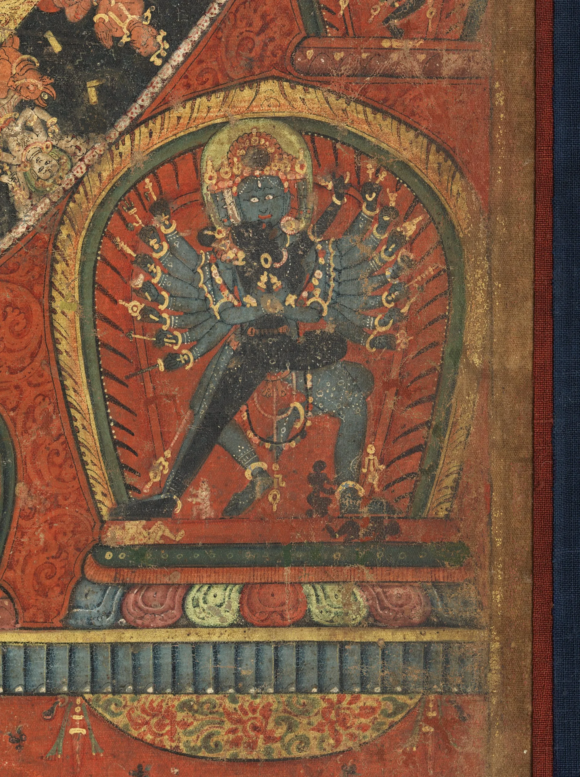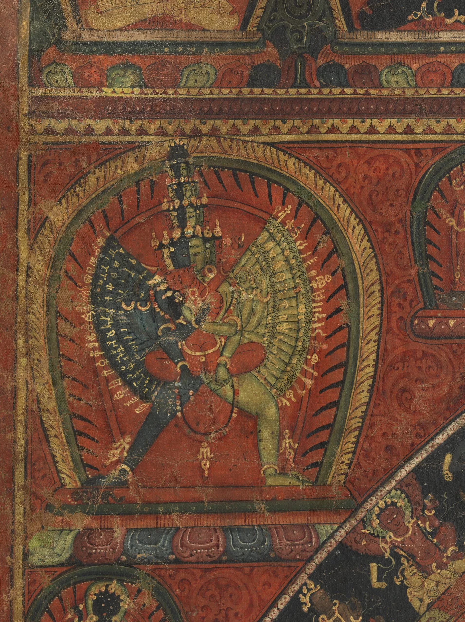 The Chakrasamvara Mandala is the archetype of the Highest Yoga Tantra meditation cycles in Newar Buddhism. Chakrasamvara and Vajravarahi are the principle deities of secret shrines in Newar Buddhist institutions. The shrines and the rituals related, however, are accessible only to the initiated Buddhists, and images of Chakrasamvara are never displayed in public. Although Chakrasamvara’s significance is commonly known in Newar Buddhism, these practices are rarely openly discussed with the uninitiated.