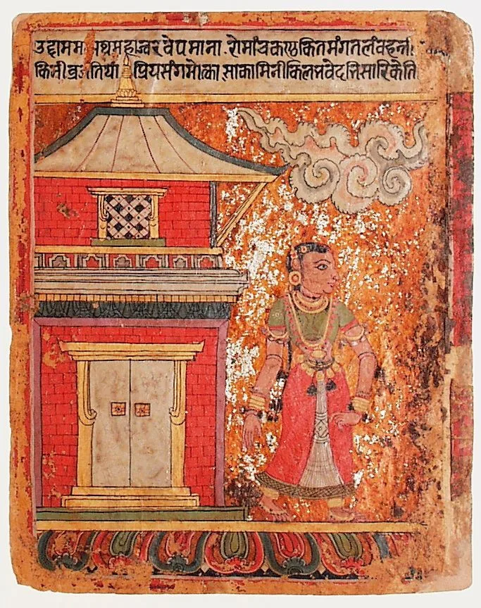 - Heroine Going to the Tryst (Abhisarika), Nayika Painting Appended to a Ragamala (Garland of Melodies)