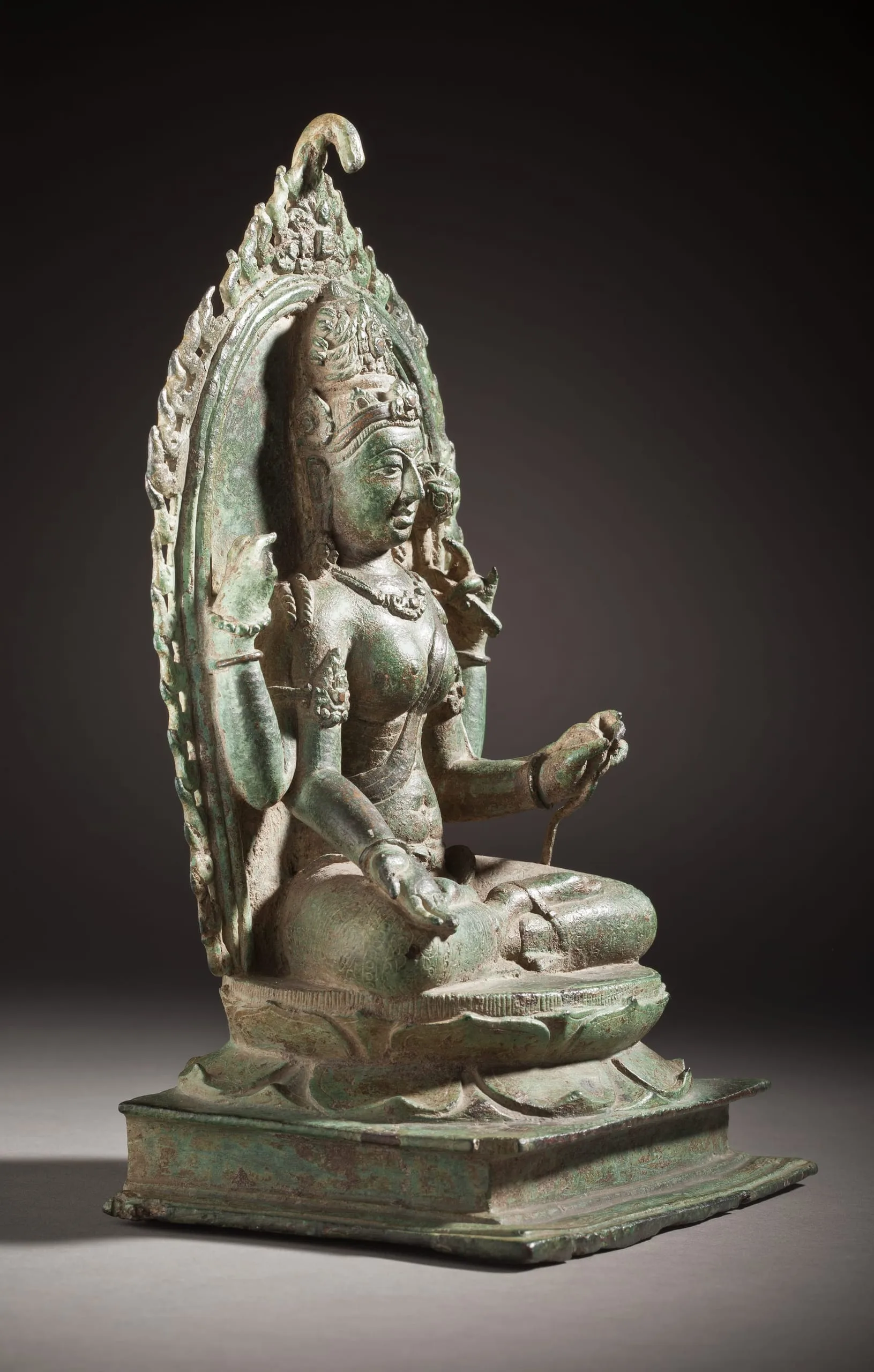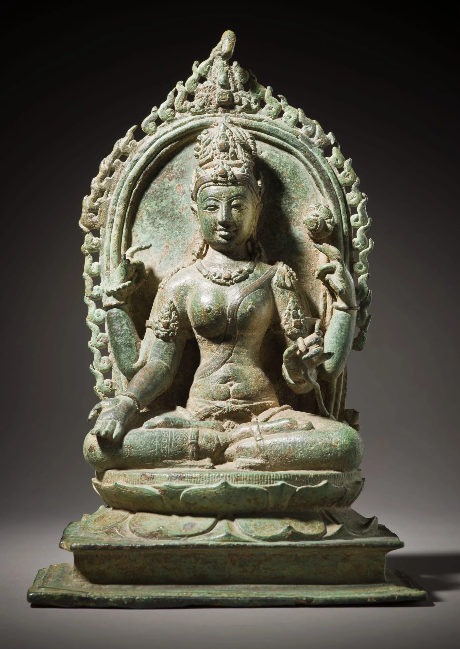 A comparable Central Javanese bronze image of Green (Shyama) Tara, albeit two-armed, is in the National Museum of Indonesia, Jakarta (640).