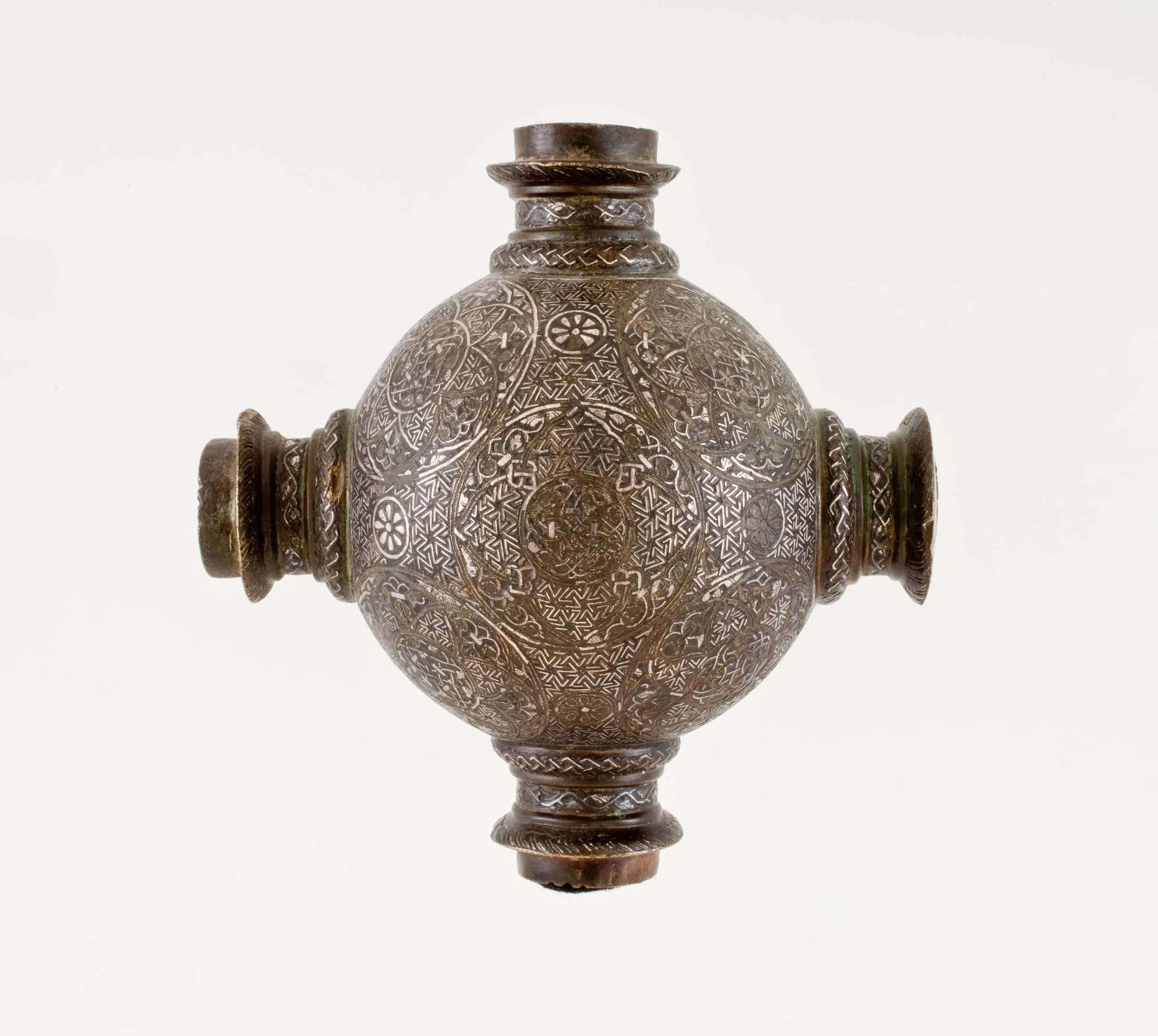 - Brass, inlaid with silver and gold