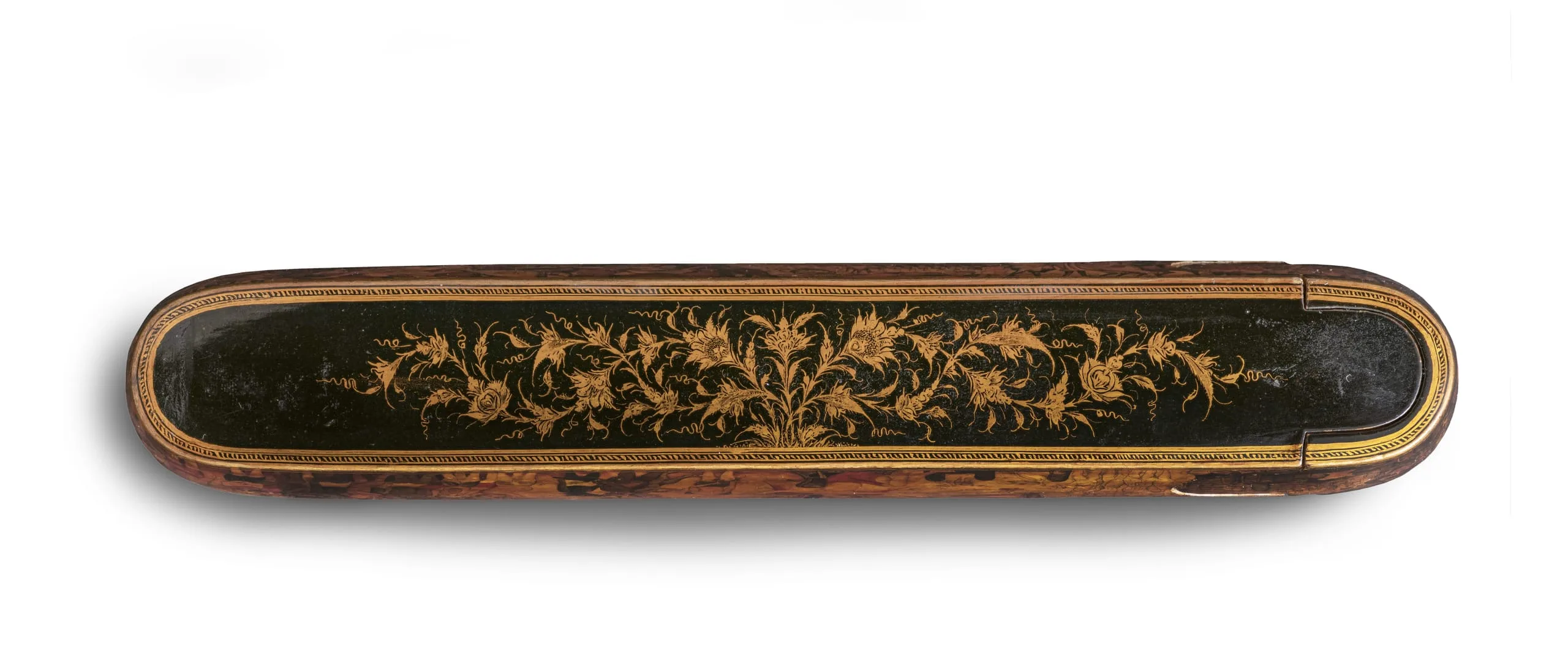- Wood, papièr maché, lacquer, and gold