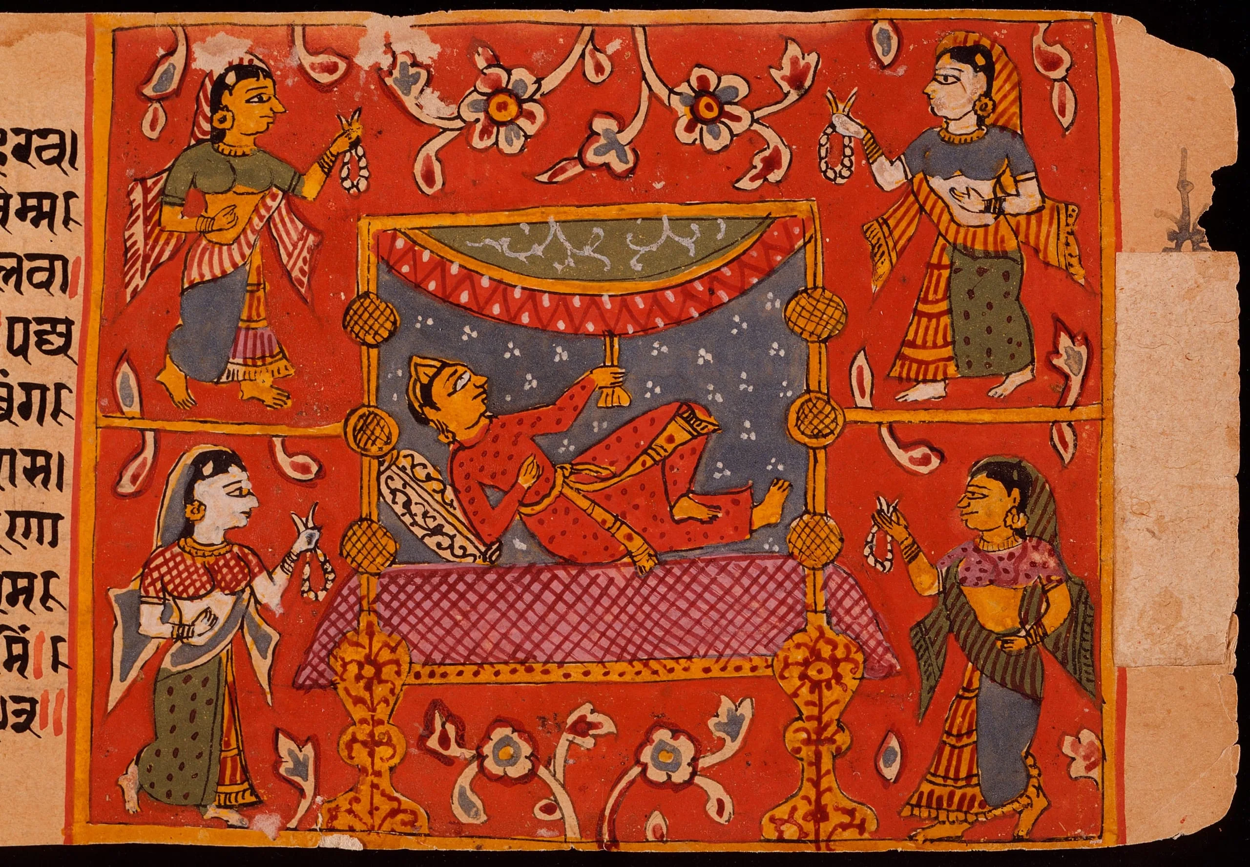 - Reclining God with Attendants, Folio from a Samgrahanisutra (Book of Compilation)