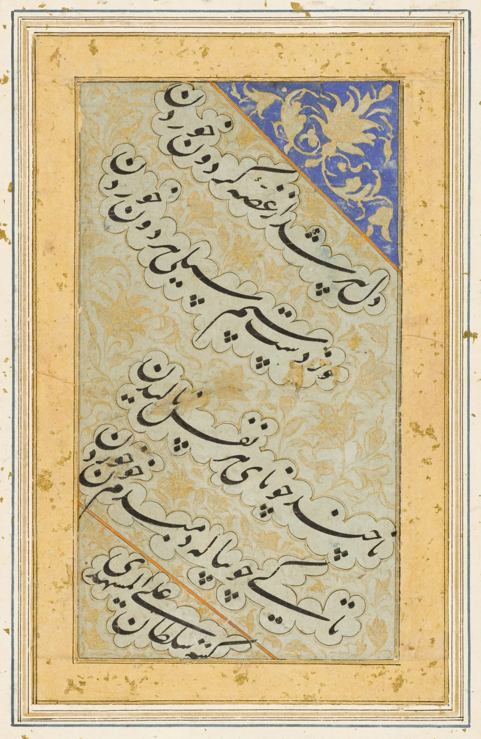 - Ink, opaque watercolor and gold on paper