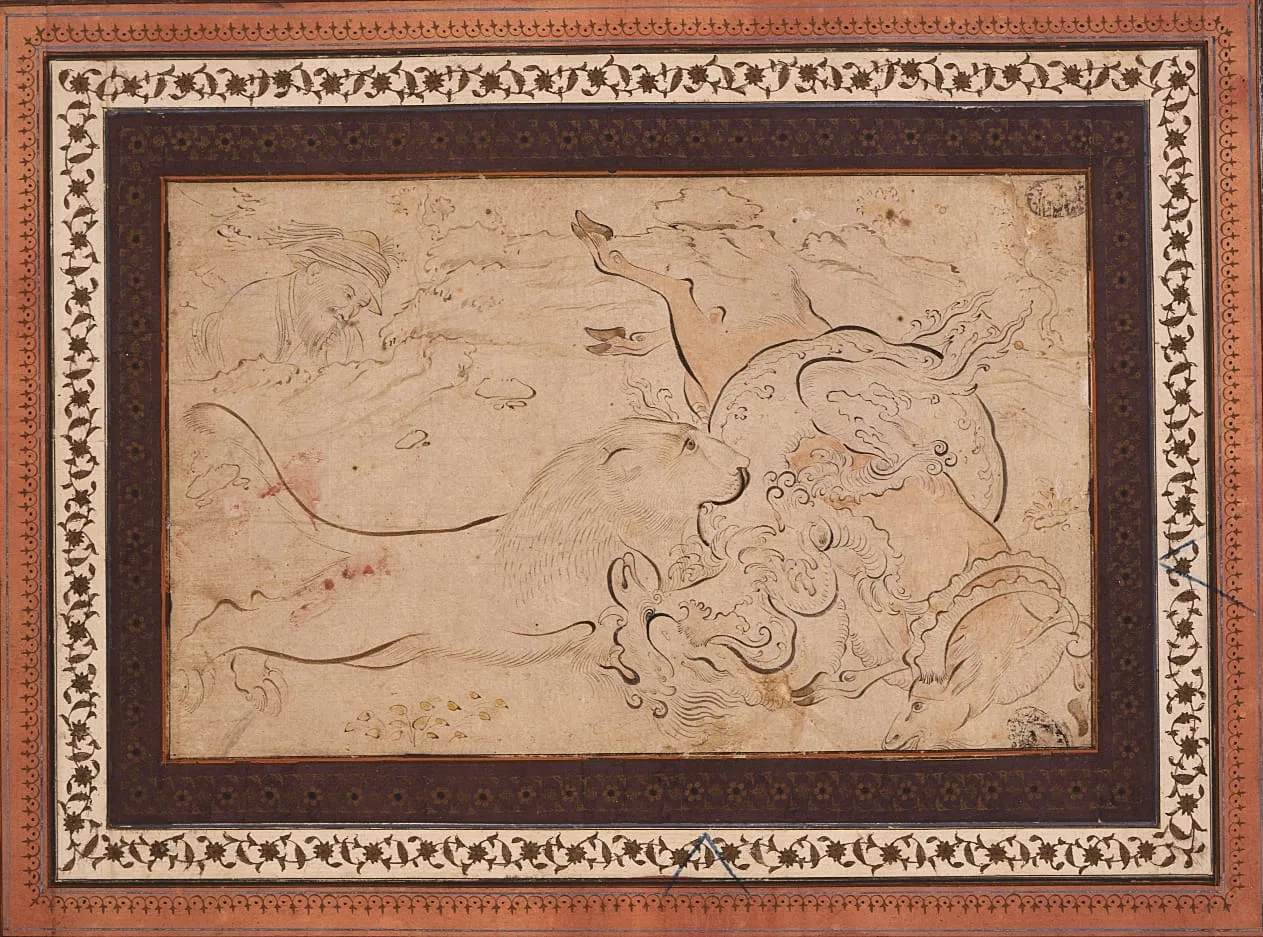 - Lion Attacking a Dragon Wrapped Around a Ram, Page from an Album