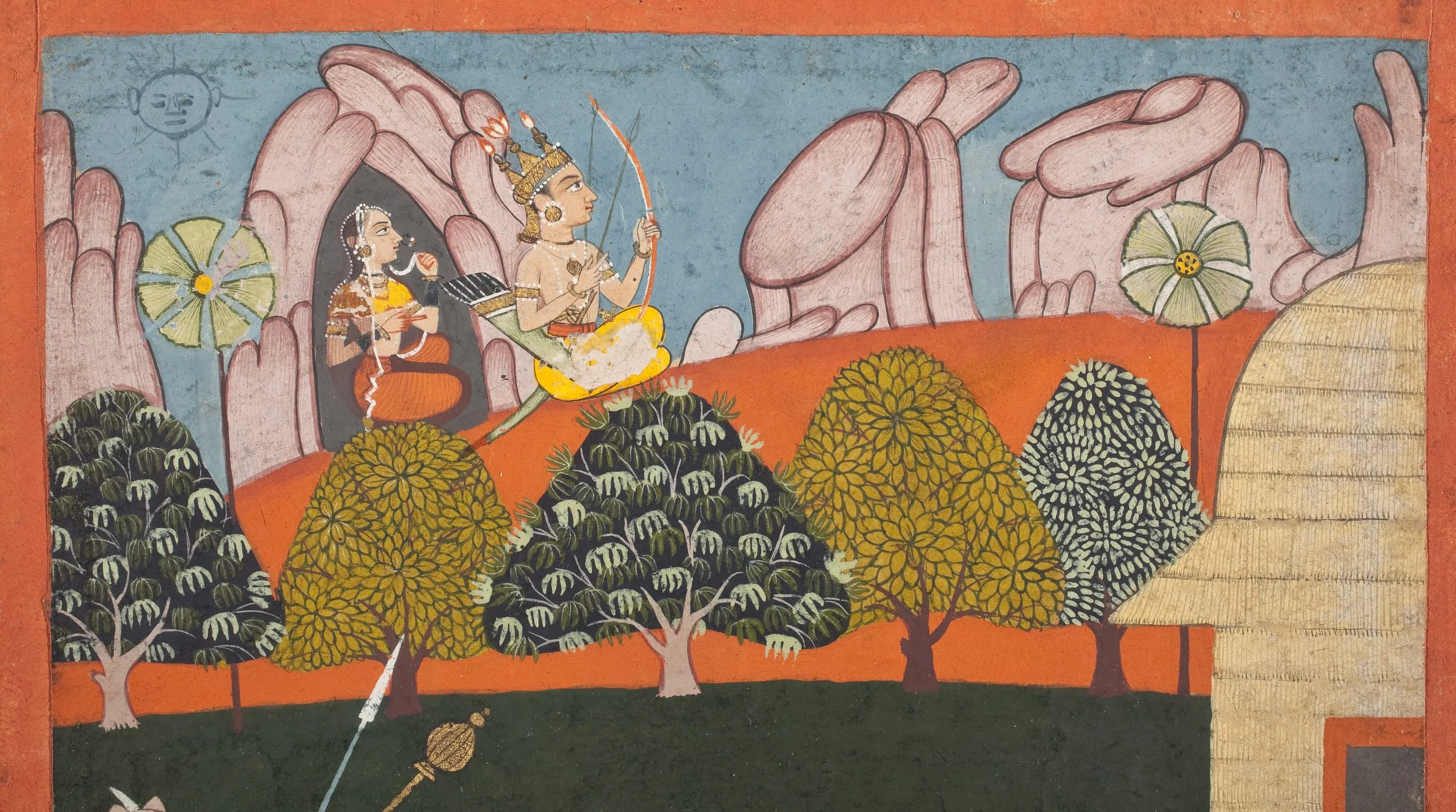 This folio appears to be from a different Ramayana series than a second contemporaneous Ramayana series from Sawar. See a folio formerly in the Howard Hodgkin Collection, now in the Metropolitan Museum of Art, New York (2022.218).