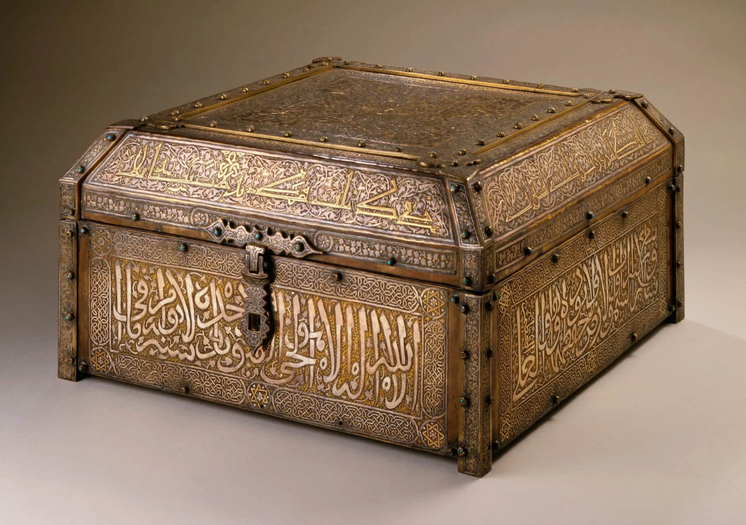 - Bronze with brass inlay and precious inlaid stones