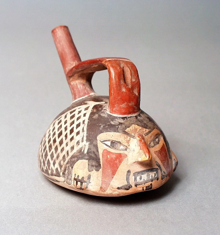 - Ceramic, hand built, slip painted and decorated, burnished and fired