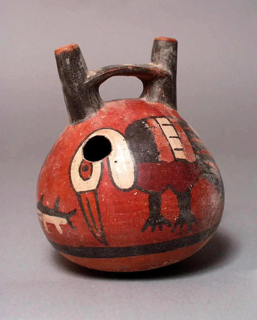 Double-Spout and Bridge Vessel with Waterbirds and Fish