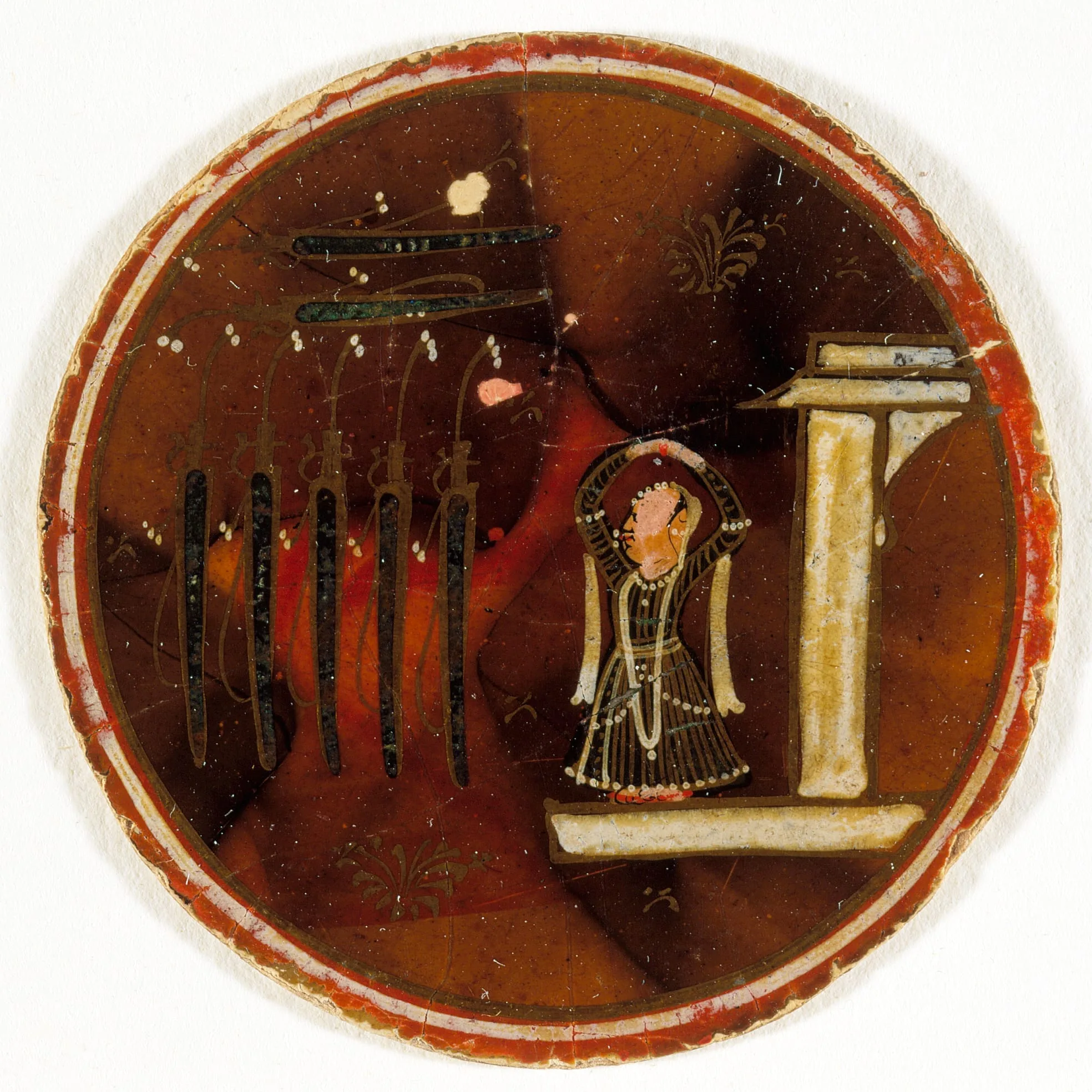 - Seven Swords and a Woman Beside a Pavilion, Number Seven in the Shamsher (Sword) Suit, Playing Card from a Mughal Ganjifa Set