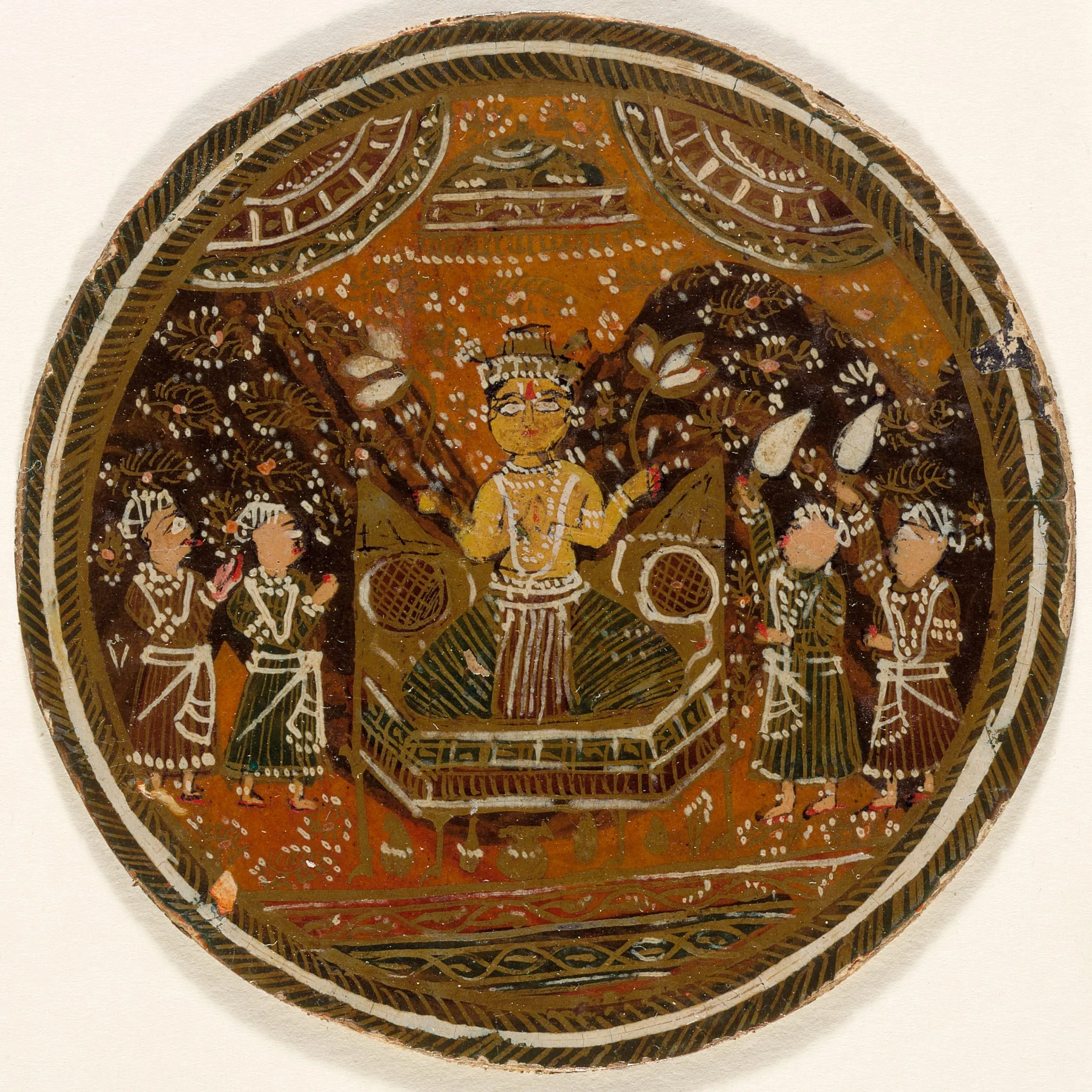 - Enthroned and Crowned Buddha Holding Lotuses, King of the Buddha Suit, Playing Card from a Dashavatara (Ten Avatars) Ganjifa Set