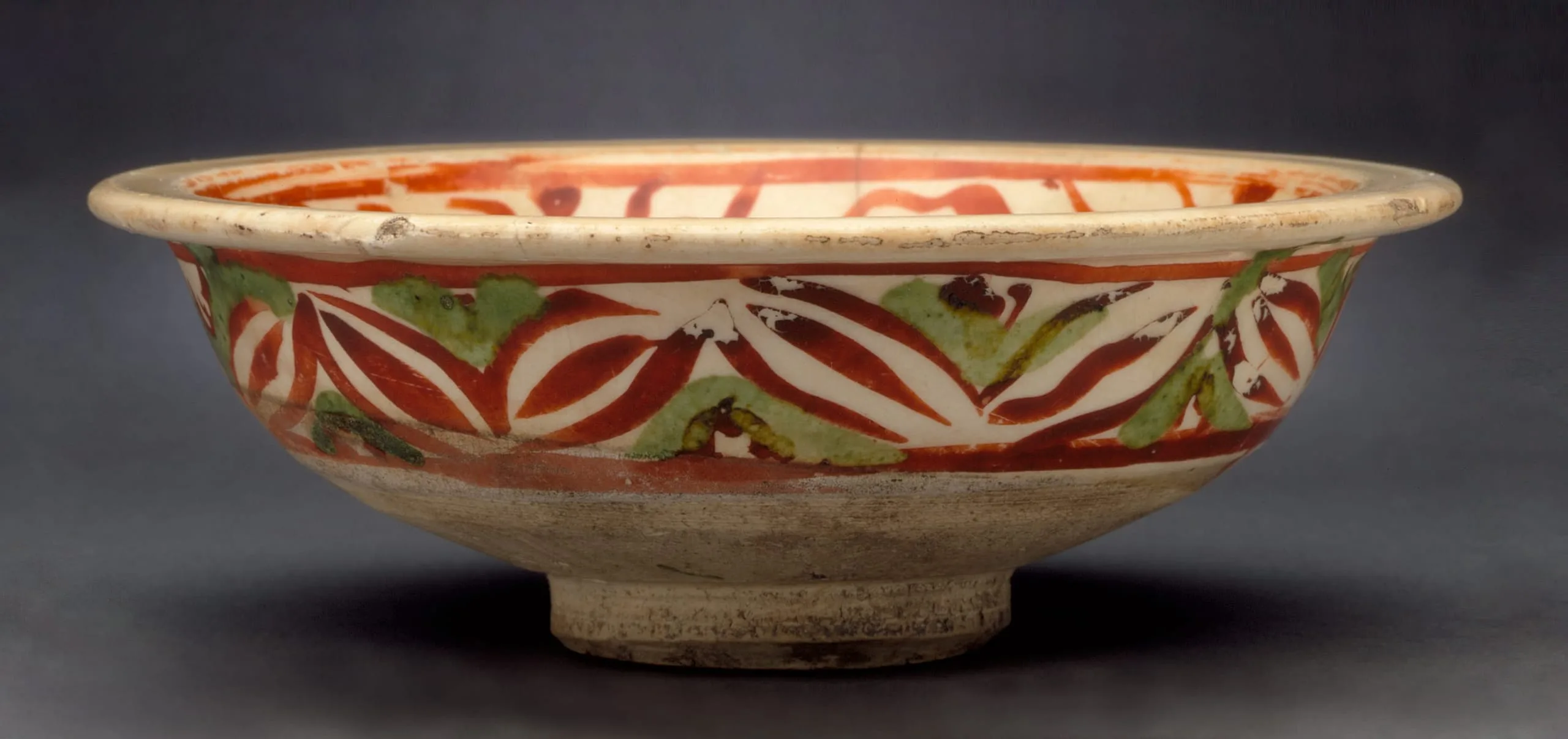 - Cizhou ware type, wheel-thrown stoneware with white glaze and painted overglaze enamel decoration