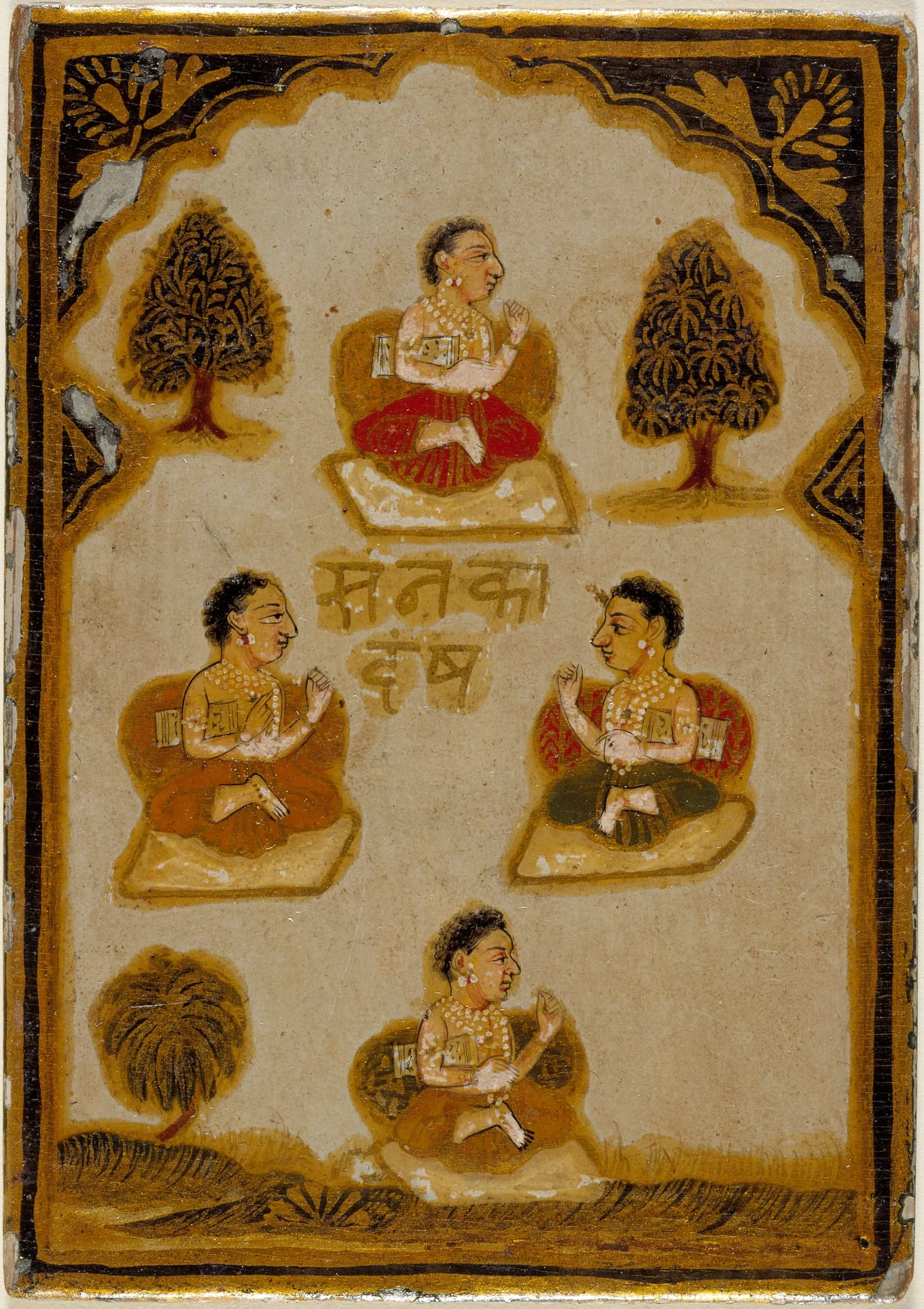 - Four Monks, Number Four of the Sanaka (Ancient) Suit, Playing Card from a 32-Suit Dashavatara (Ten Avatars) Ganjifa Set