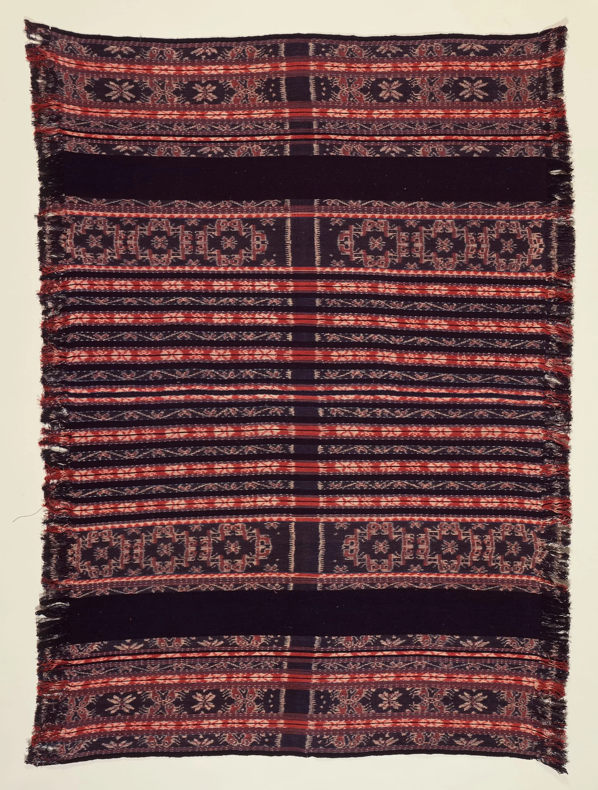 - Cotton plain weave, tie-resist dyed (ikat)