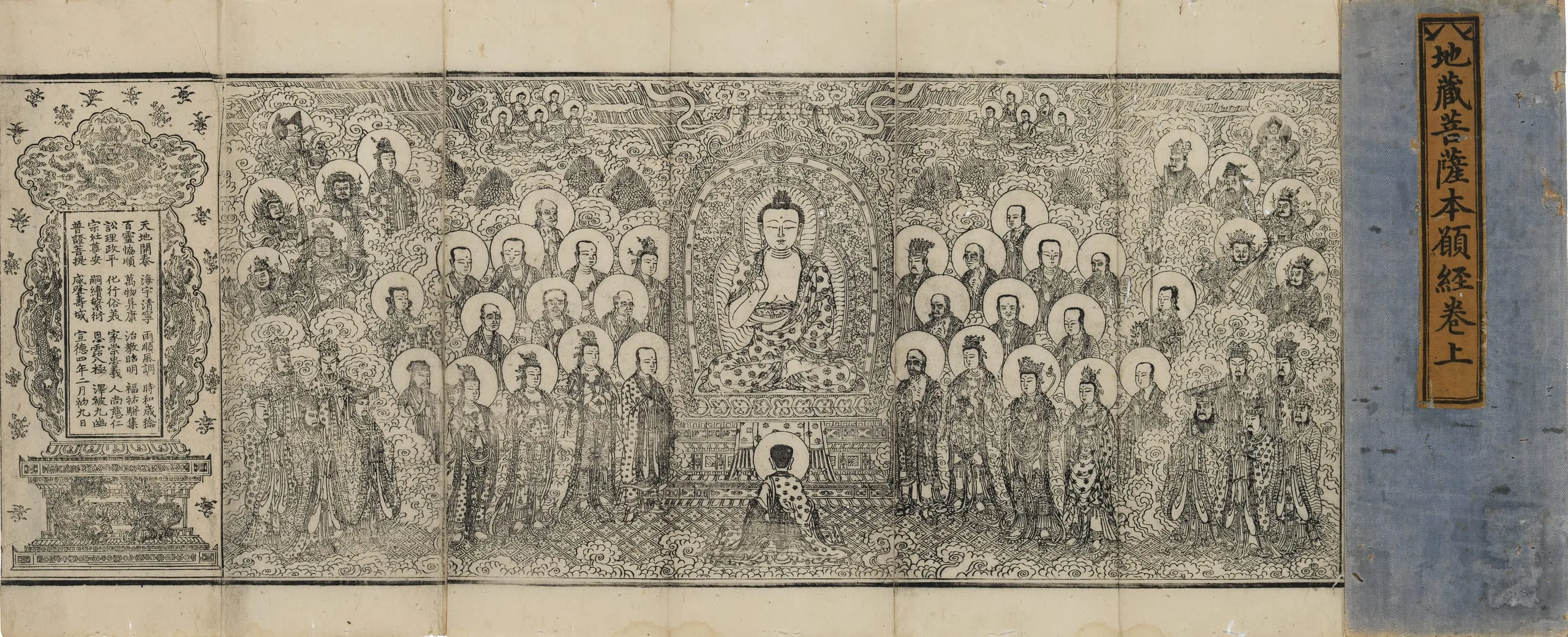 - Frontispiece of the 'Original Vows of the Bodhisattva Ksitigarbha Sutra (Dizang Pusa Benyuan Jing)' with the Assembly at Vultura Peak