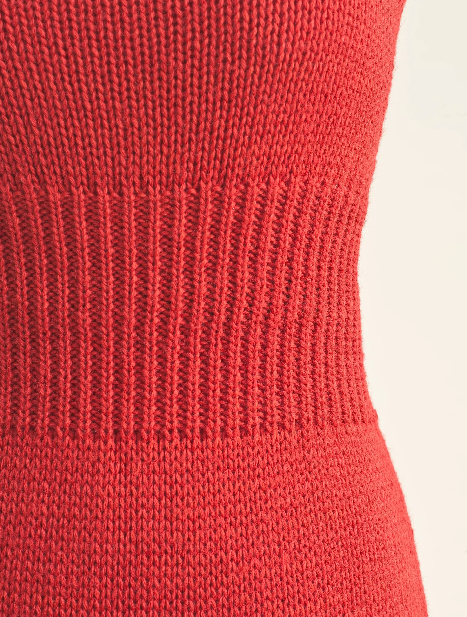 As a boy in Vienna, Gernreich spent countless hours sketching high fashion in his aunt’s dress shop. In California, following a career in dance, he based his fashion designs on the beauty of the natural body in motion. Renouncing garment construction methods of the 1950s that sculpted the female body into an idealized hourglass silhouette, Gernreich created this knitted dress, utilizing the inherent elasticity of the material to mold the body without boning, padding, cutting, or further tailoring.