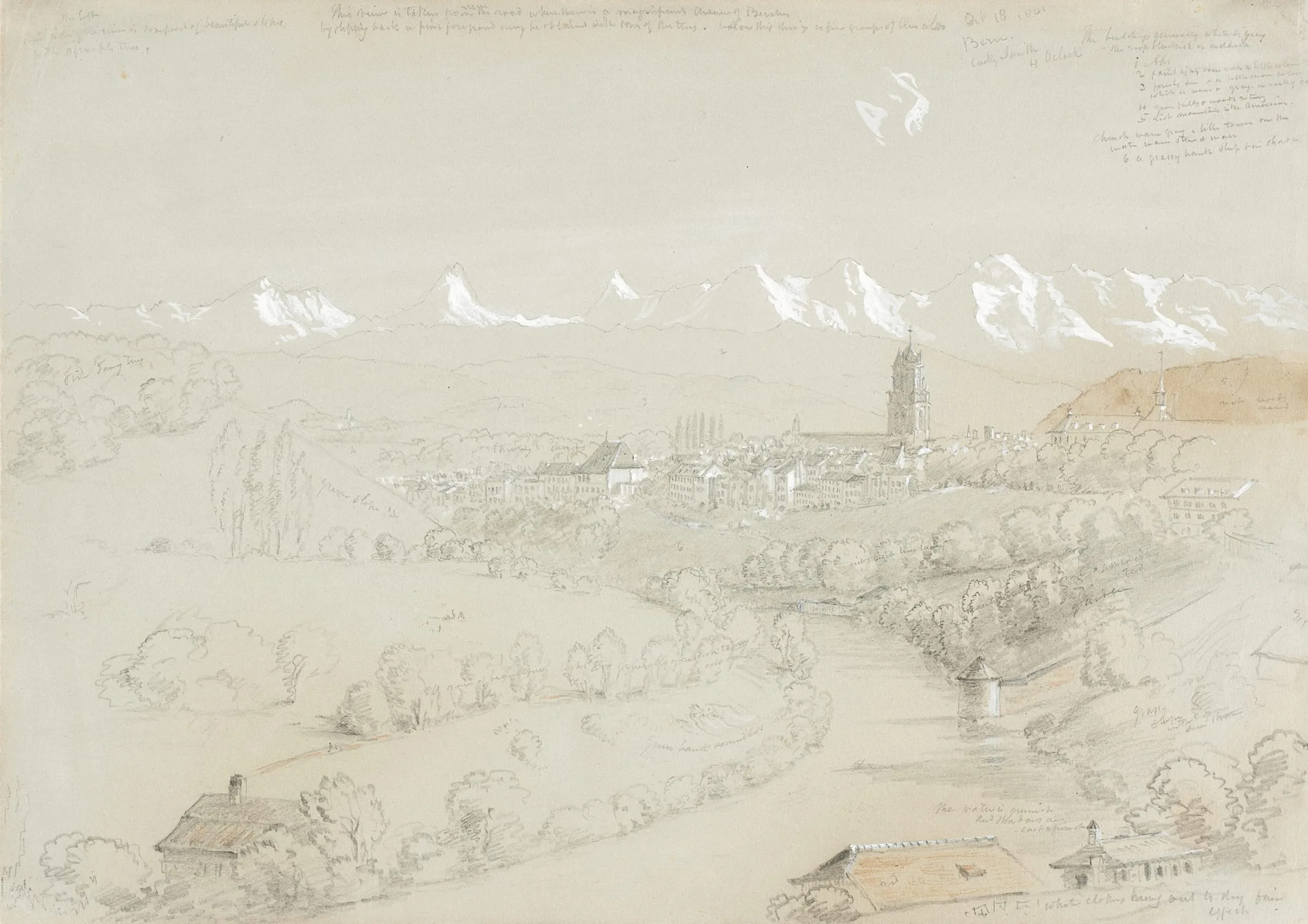 Thomas Cole made this drawing on October 18, the very day he wrote in his journal of his first sighting of the Bernese Alps: