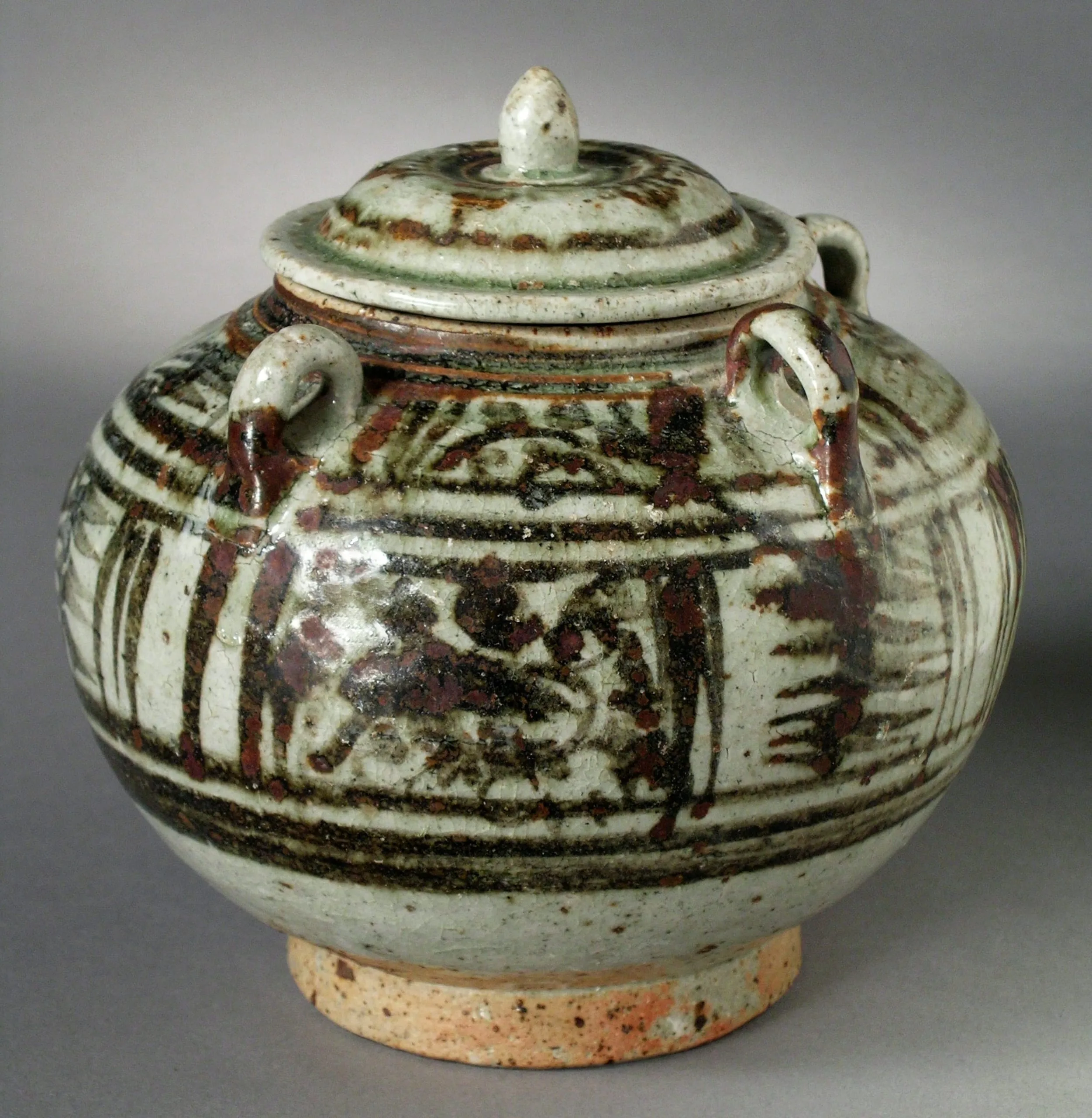 - Stoneware with underglaze brown painted decoration