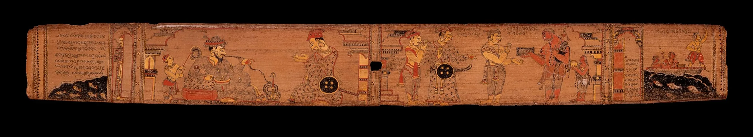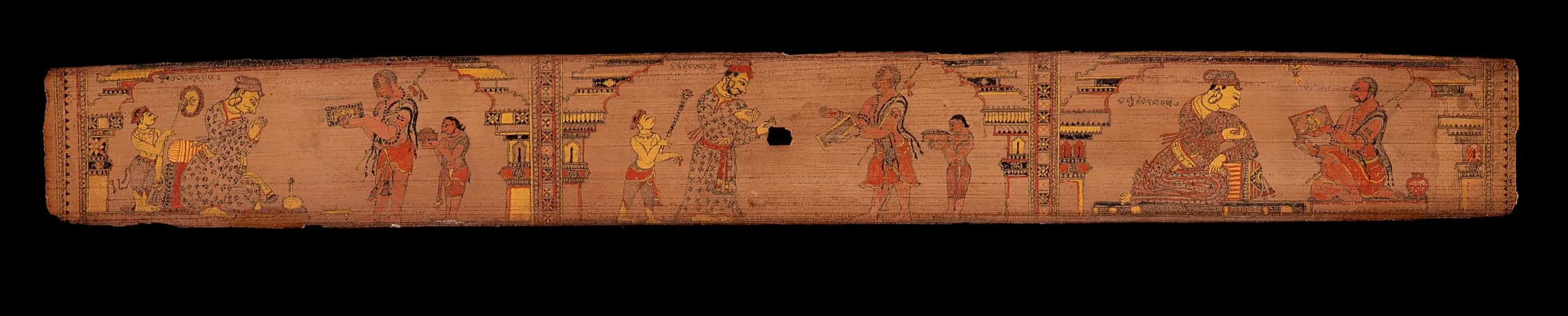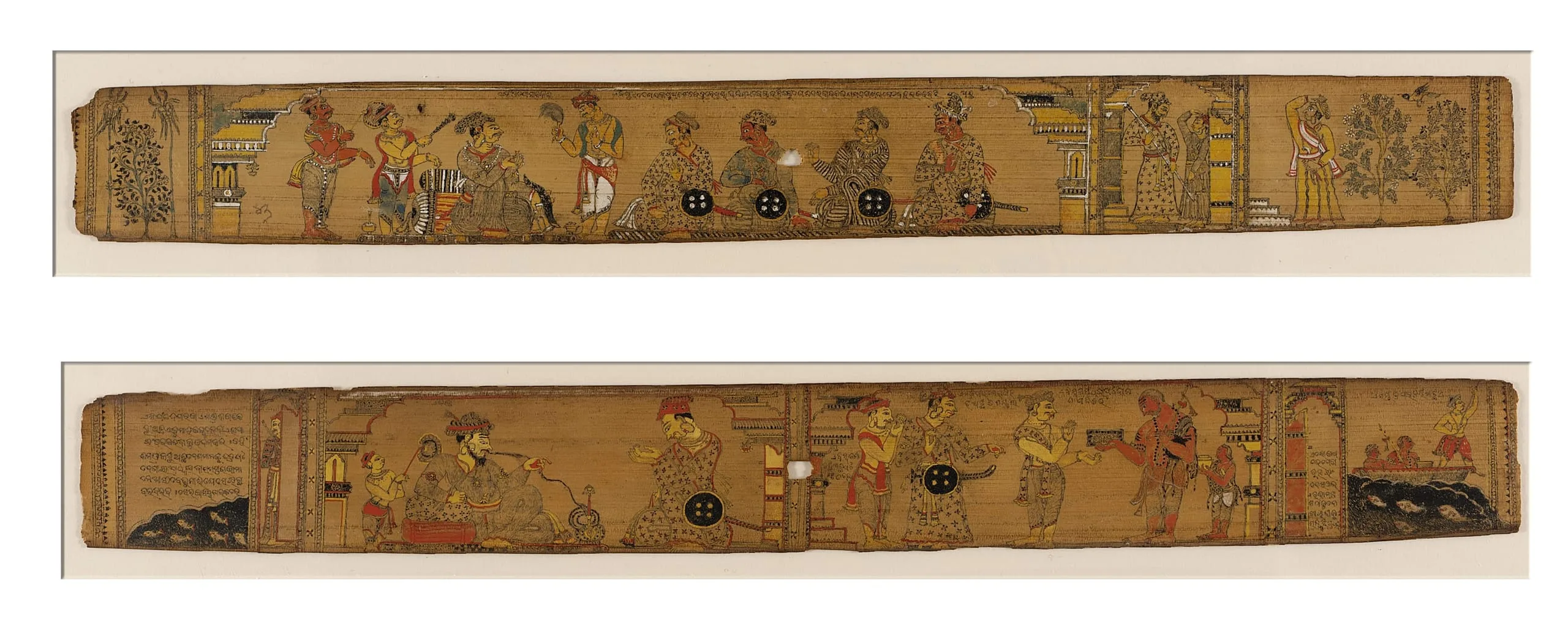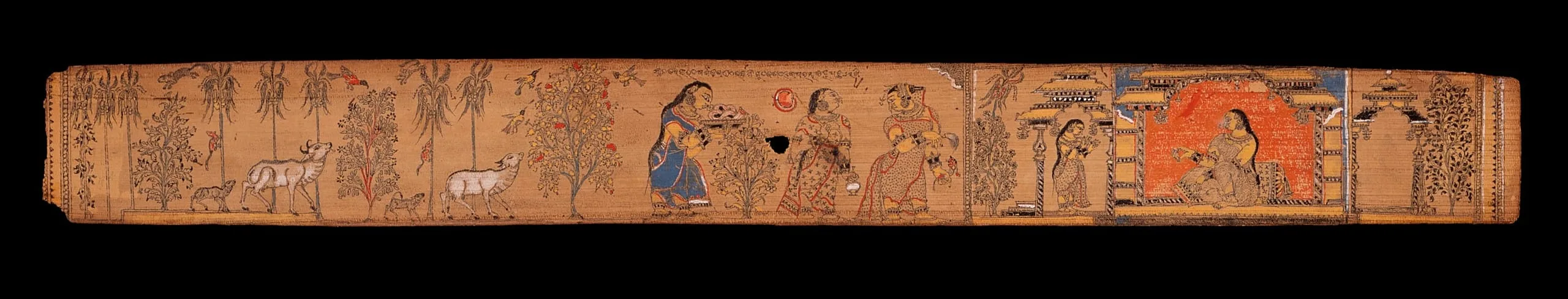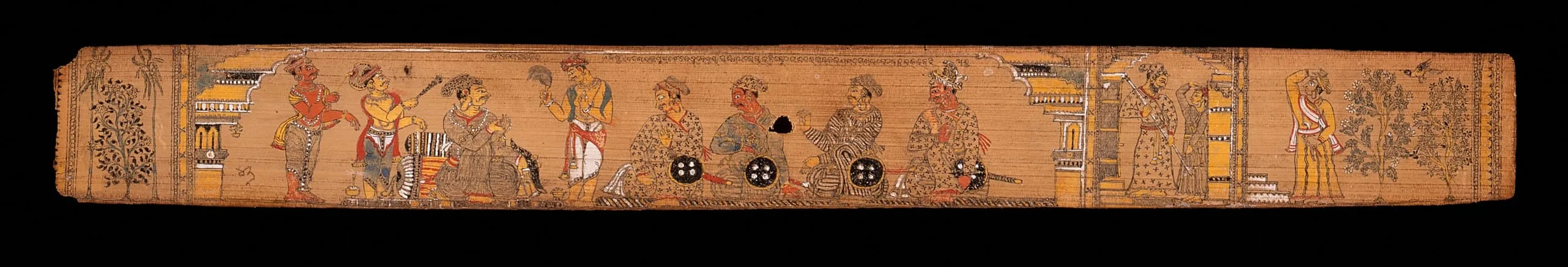 - Opaque watercolor and ink on palm leaf