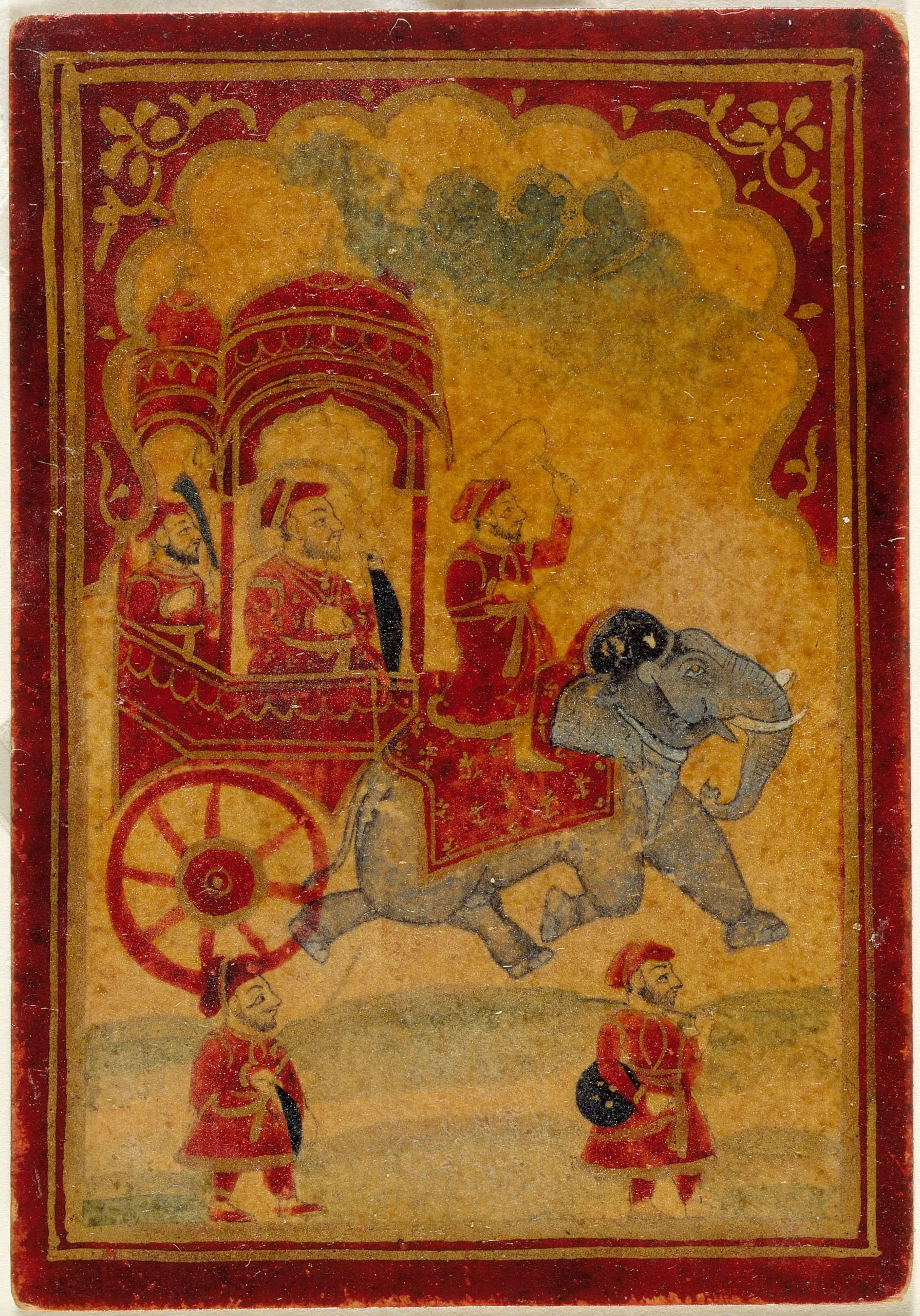 - A King in an Elephant-drawn Carriage, King of the Ghulam (Slave or Servant) Suit, Playing Card from a Mughal Ganjifa Set