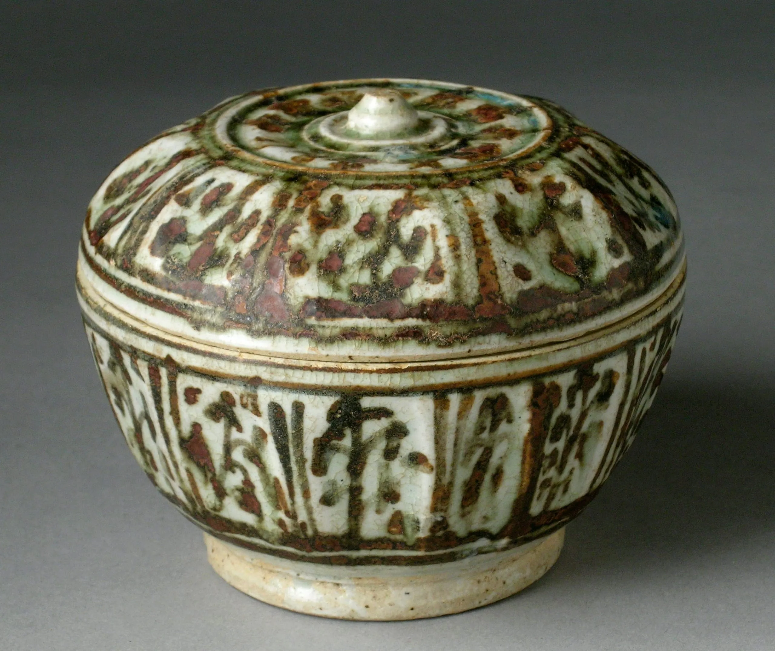 - Stoneware with underglaze brown painted decoration