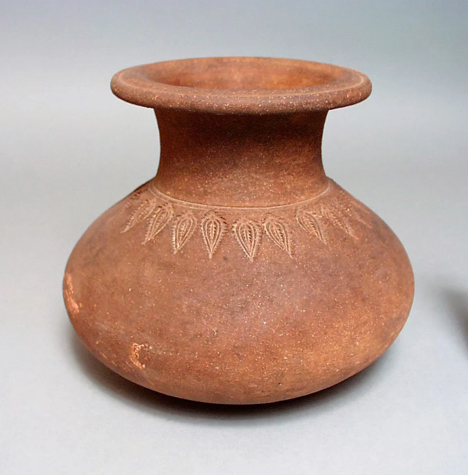 Vase with Rounded Bottom and Leaf Imprint Design Around Neck