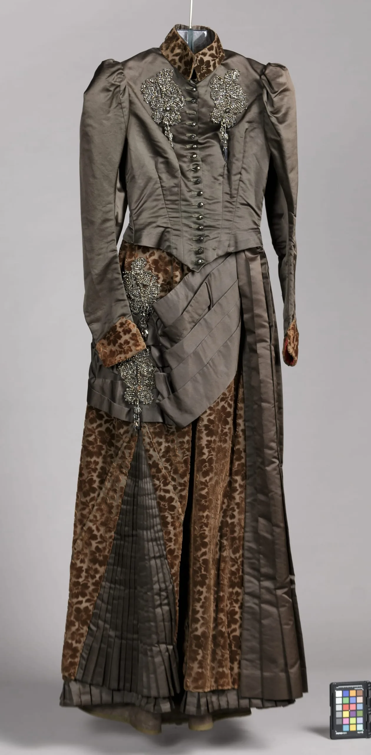 - Bodice: silk satin, silk cut and voided velvet (ciselé) with glass beads; Skirt: silk cut and voided velvet (ciselé), silk satin with glass beads
