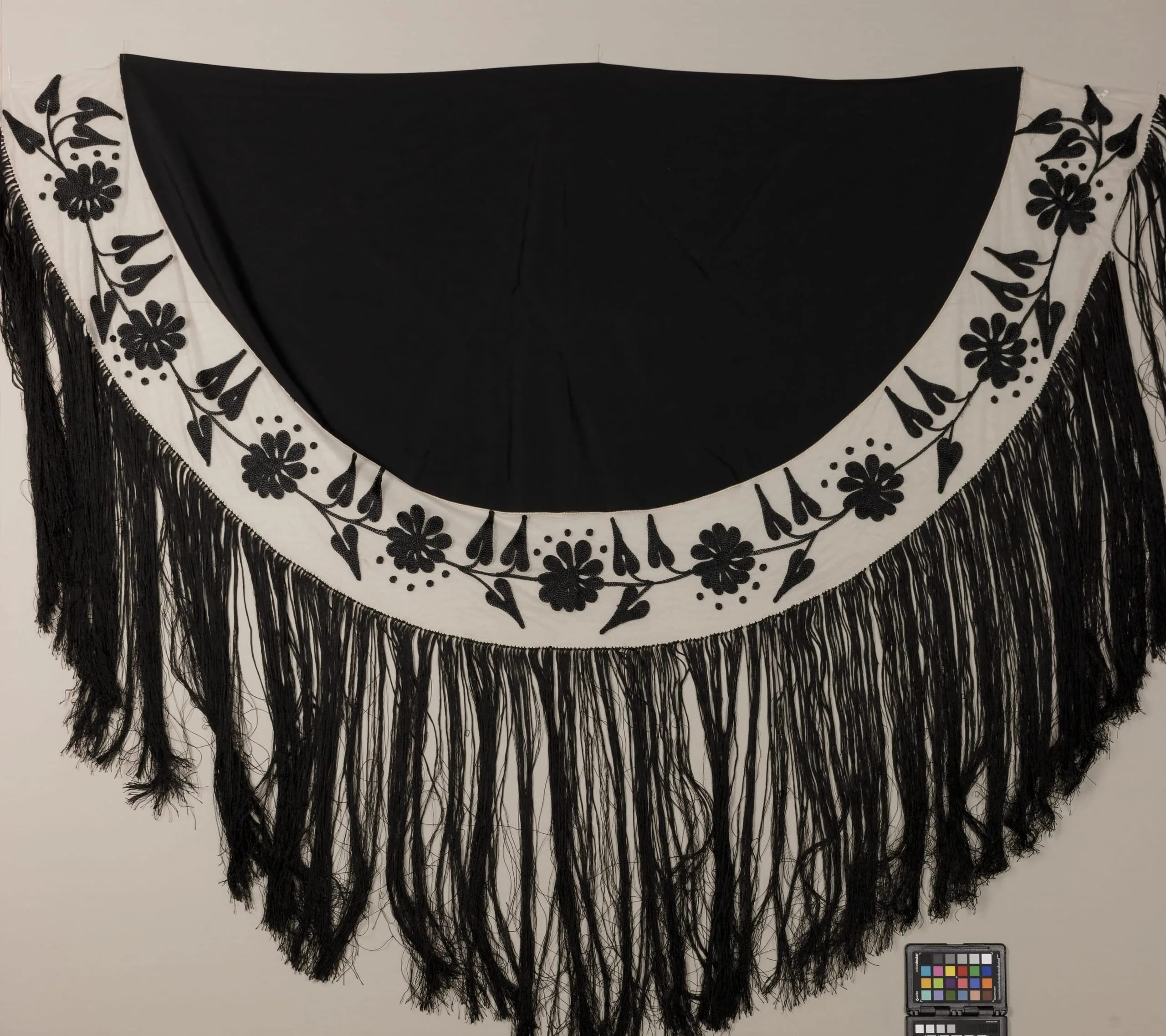 - Silk plain weave and silk net with silk embroidery and silk tassels