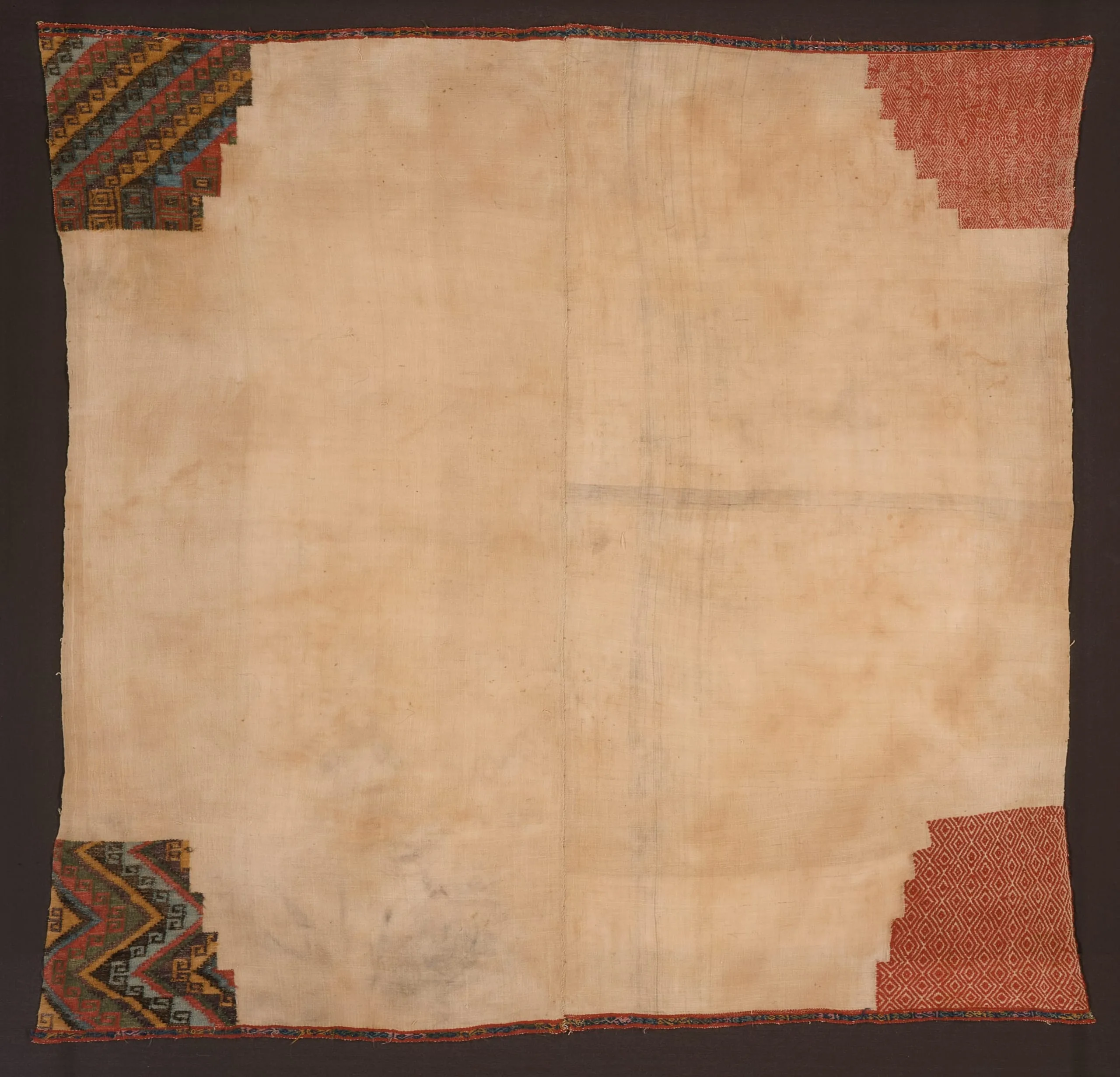 - Camelid fiber and cotton plain weave with supplementary weft patterning, borders of complementary weft weave and weft-faced plain weave.