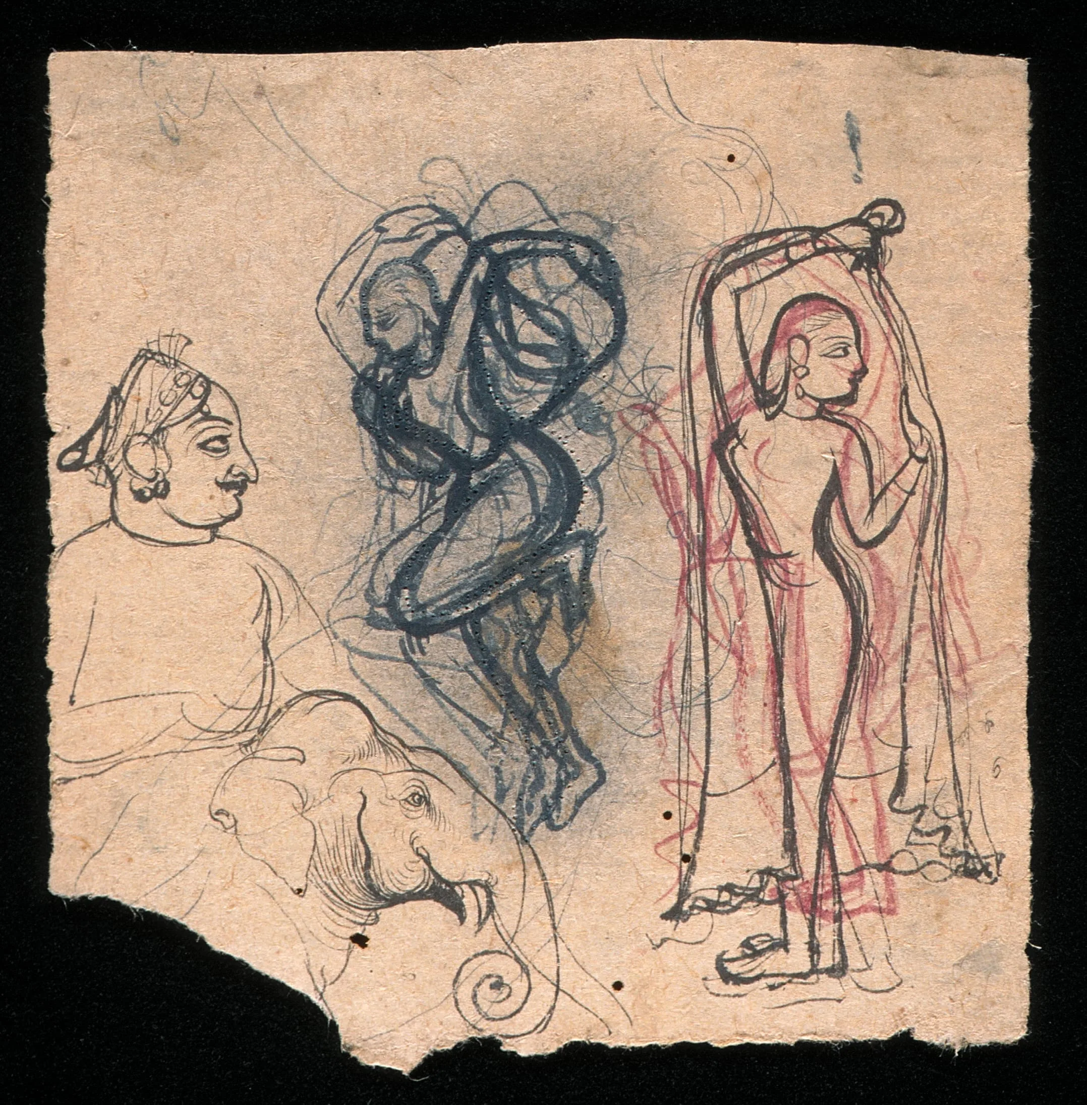 - Sketches and a Pounce of Women, a Man, and an Elephant (Recto); Sketches of Women (verso)