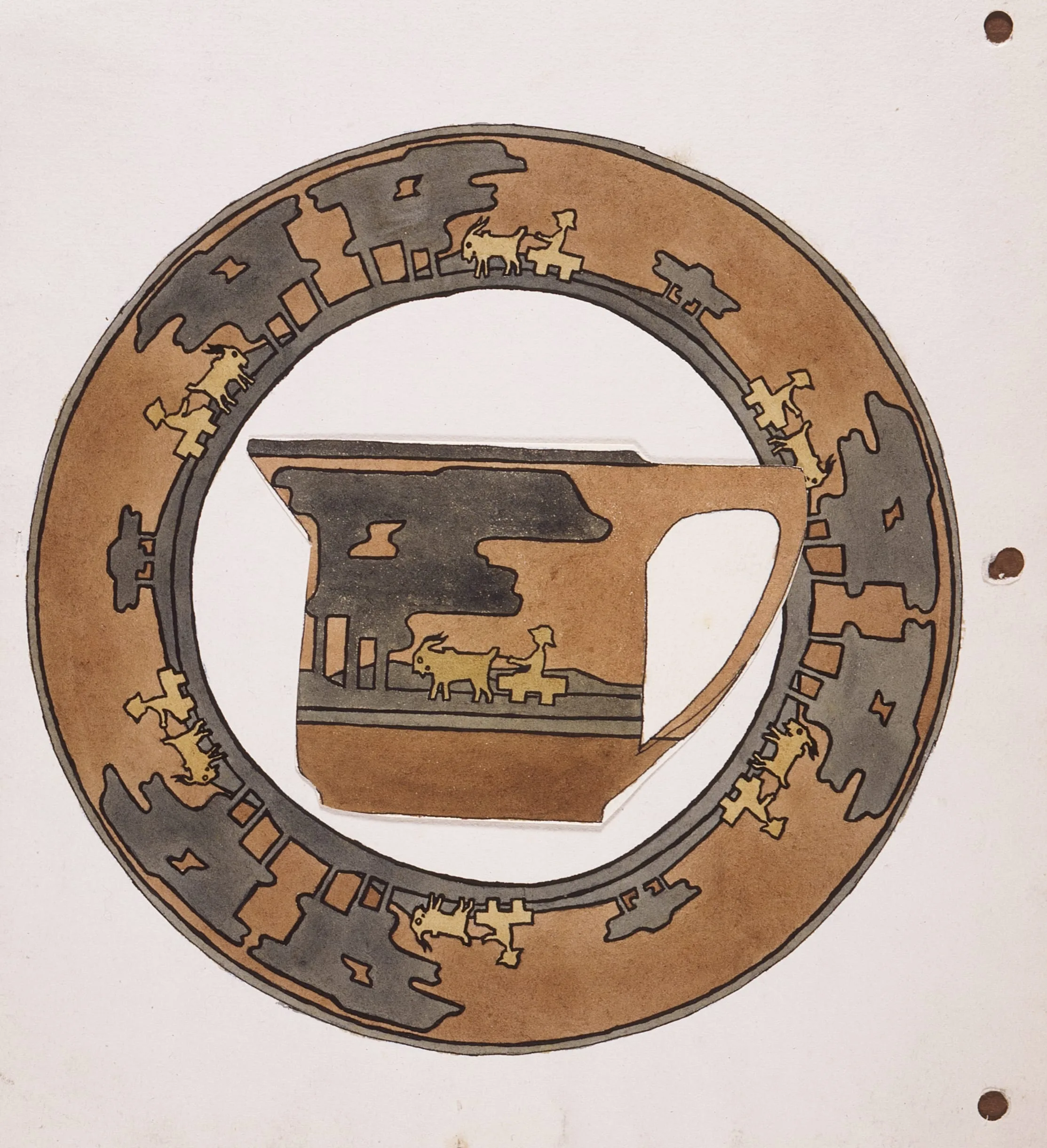 - Watercolor and ink on paper