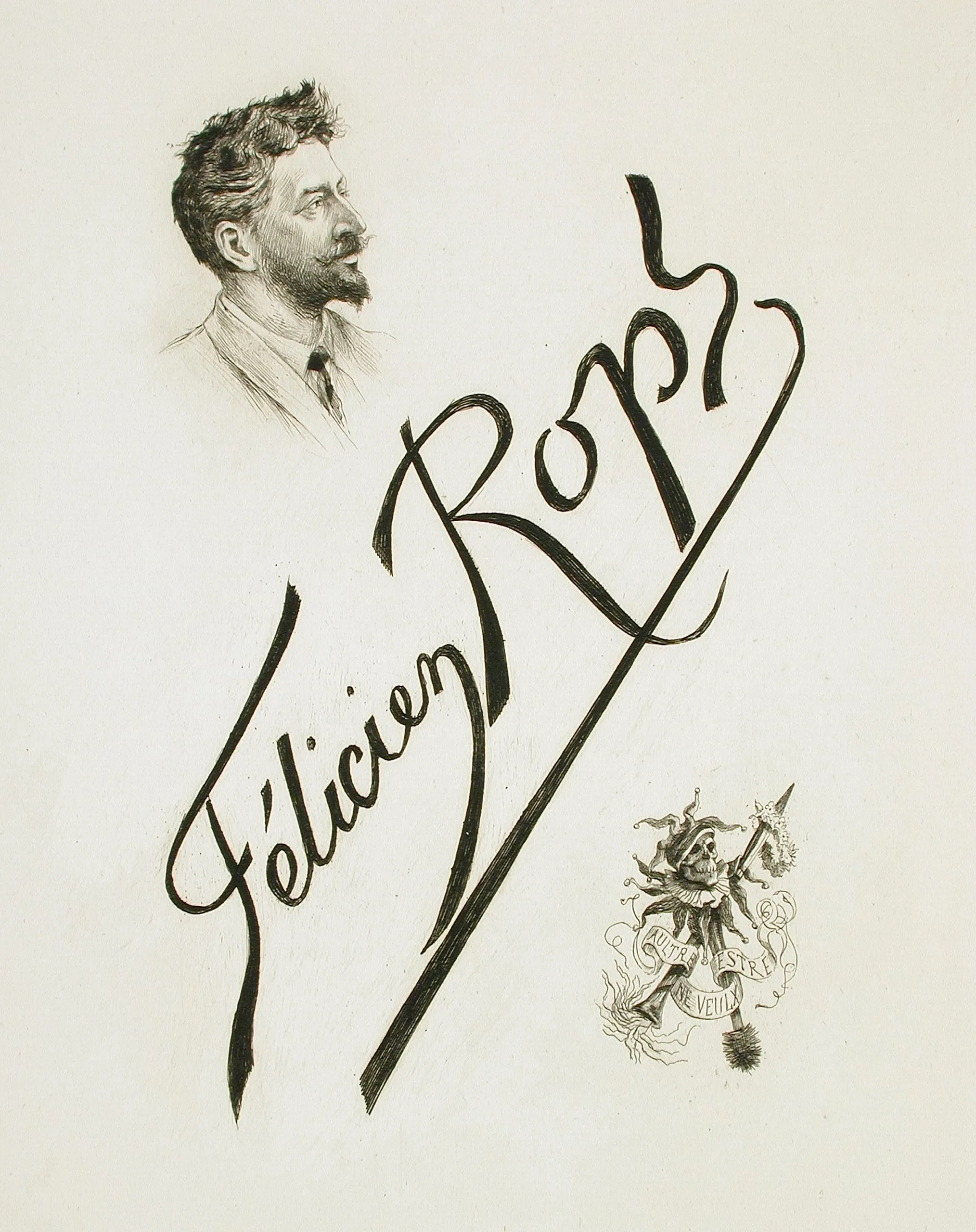 - Portrait de Rops à la marotte macabre