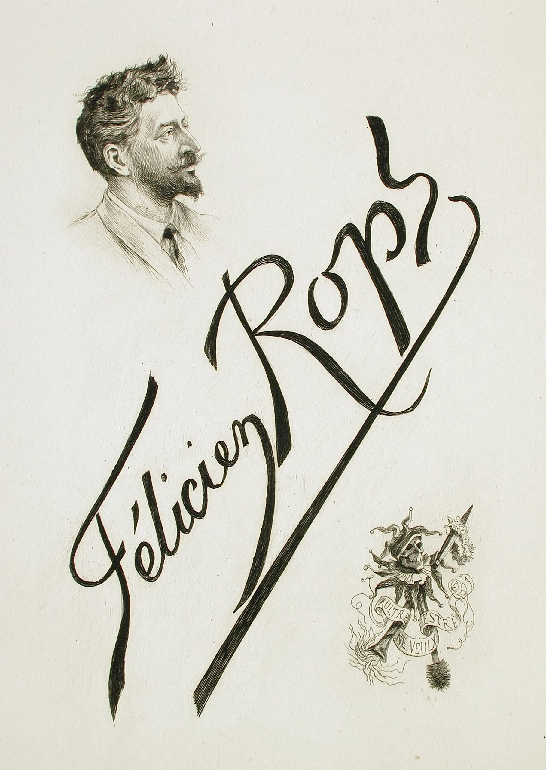 - Portrait de Rops à la marotte macabre