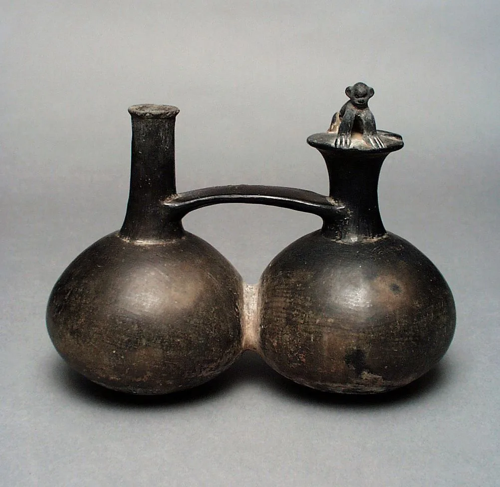 Bridge and Spouted Double Vessel with Monkey