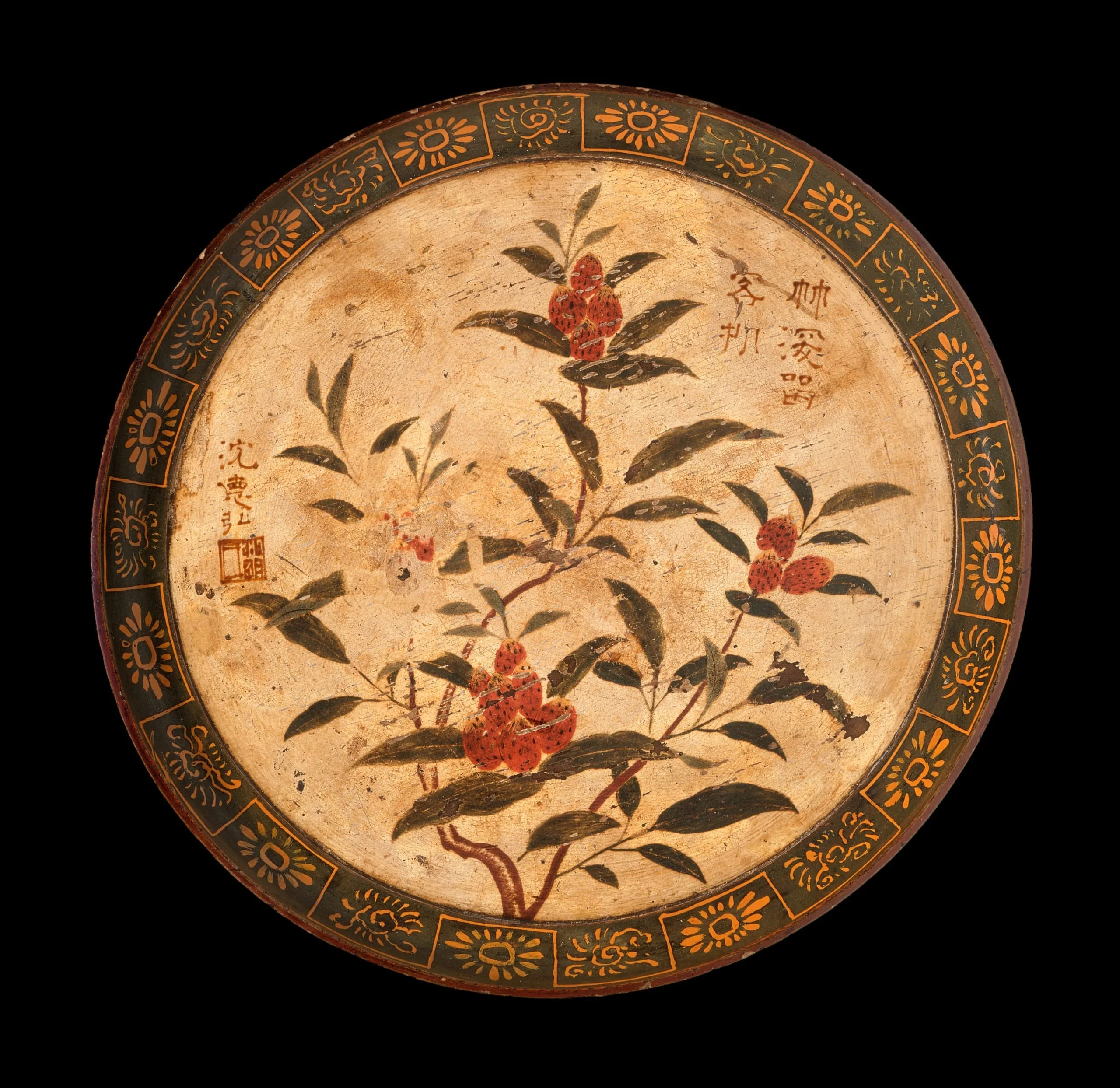 - Brown and black lacquer on wood core with litharge painted decoration (mitsuda in Japanese)