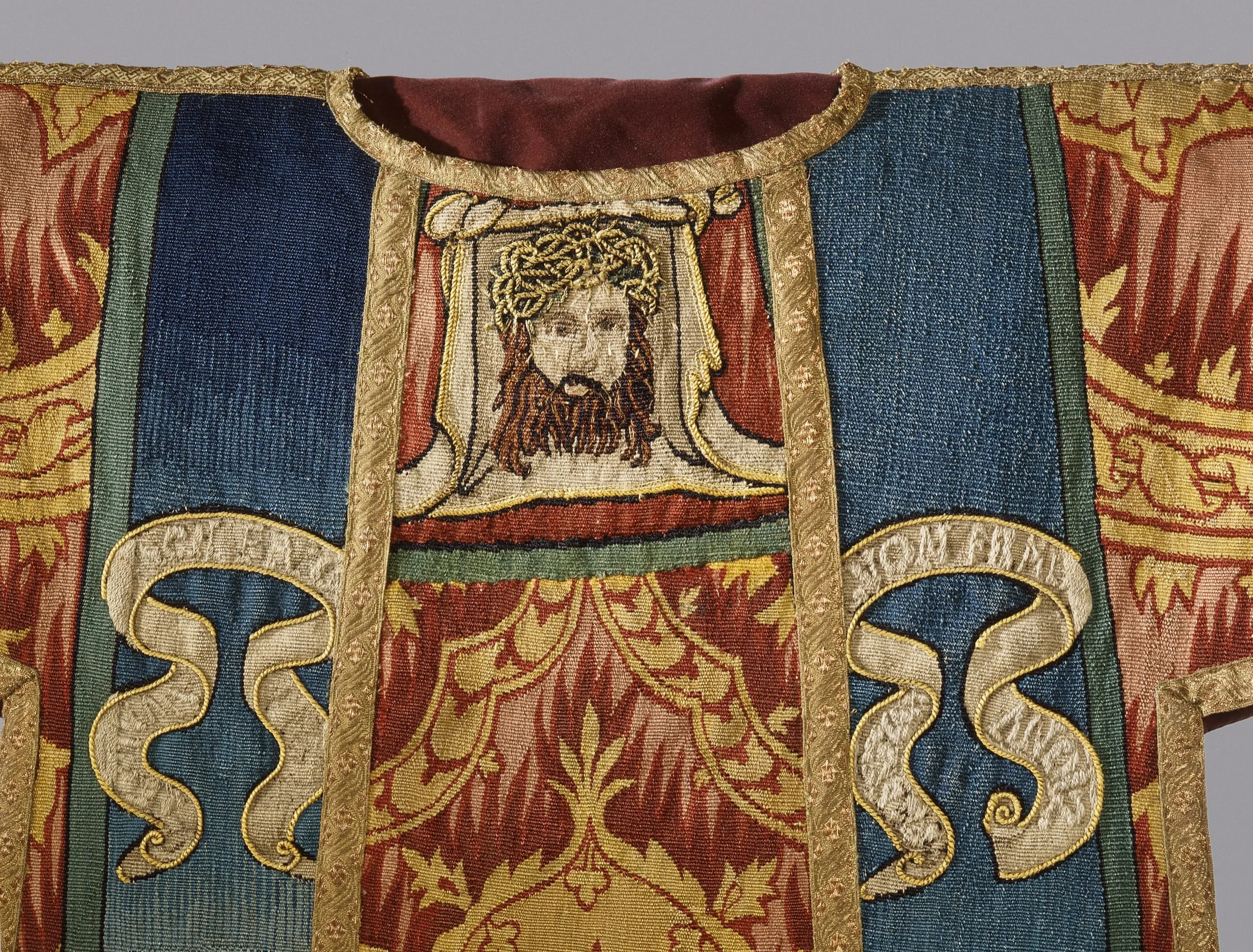 This dalmatic is part of a rare complete set of ecclesiastical vestments surviving the troubled period of the Protestant Reformation in sixteenth-century Holland. Its preservation and that of its companion pieces—today in the Metropolitan Museum of Art—are of special interest because the robes share a linked symbolism and can be dated to 1570 from an inscription on one of the Metropolitan garments.