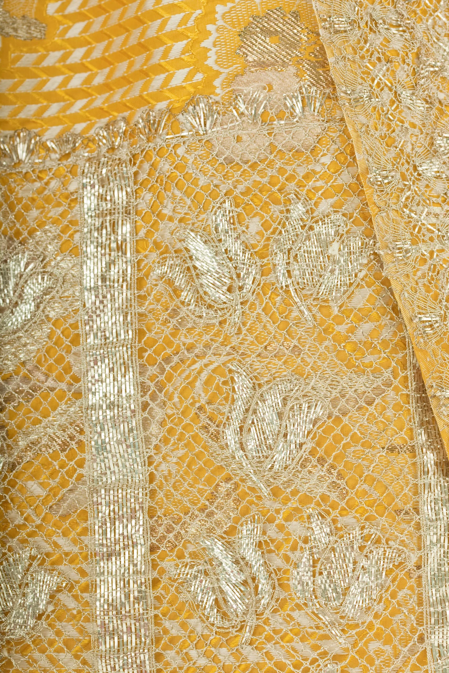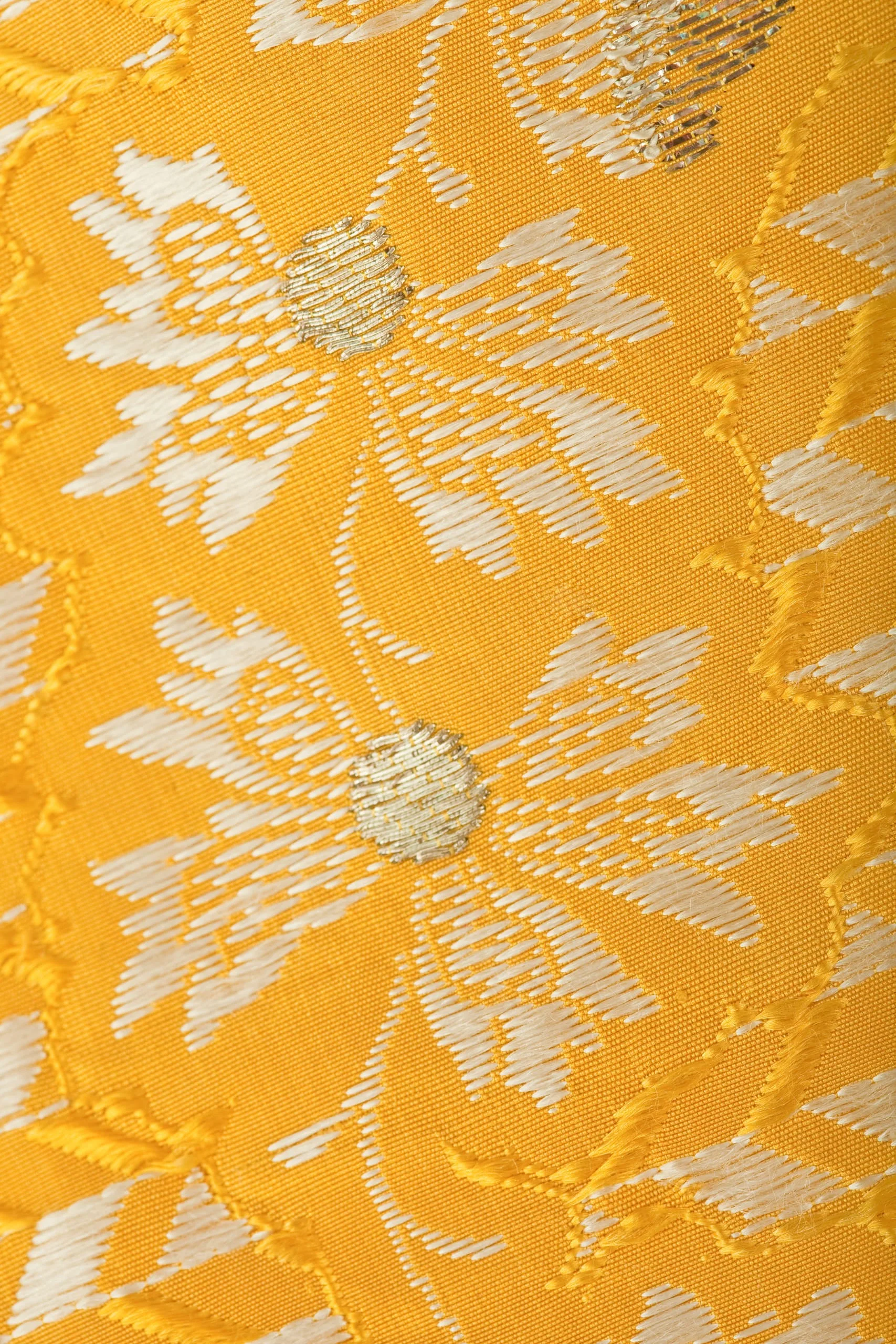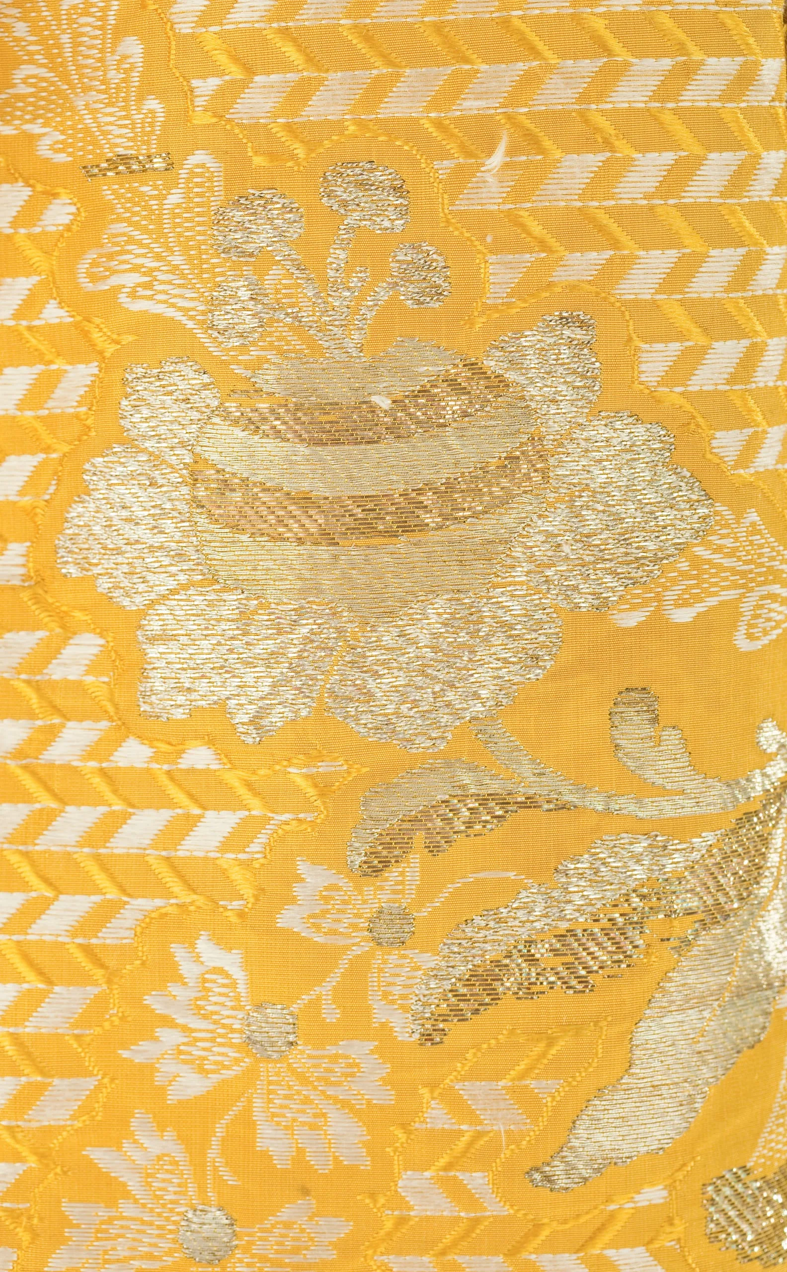 - Silk plain weave with weft-float patterning and silk with metallic-thread supplementary-weft patterning, and metallic lace