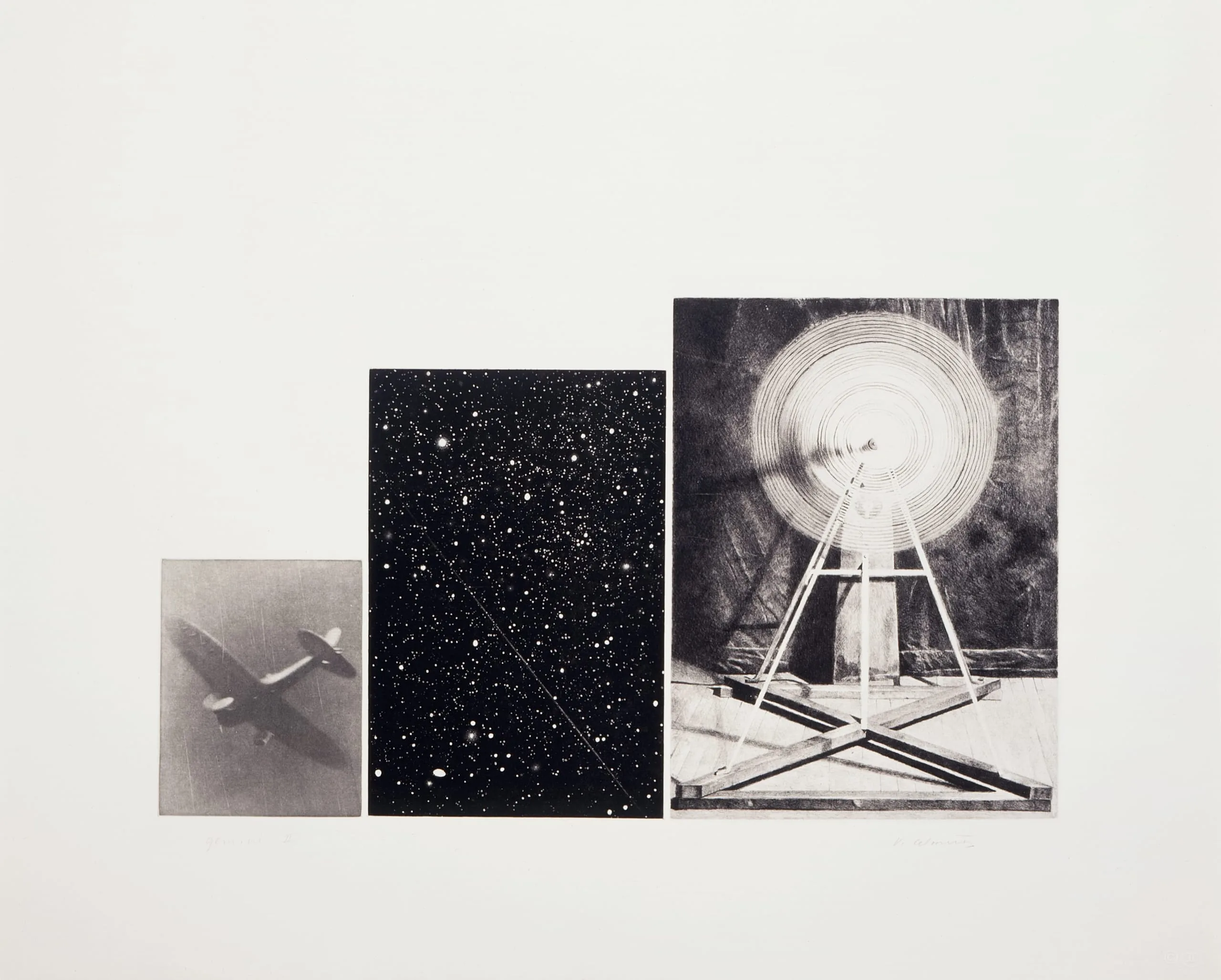 - Mezzotint, aquatint, drypoint, photogravure on Rives BFK paper