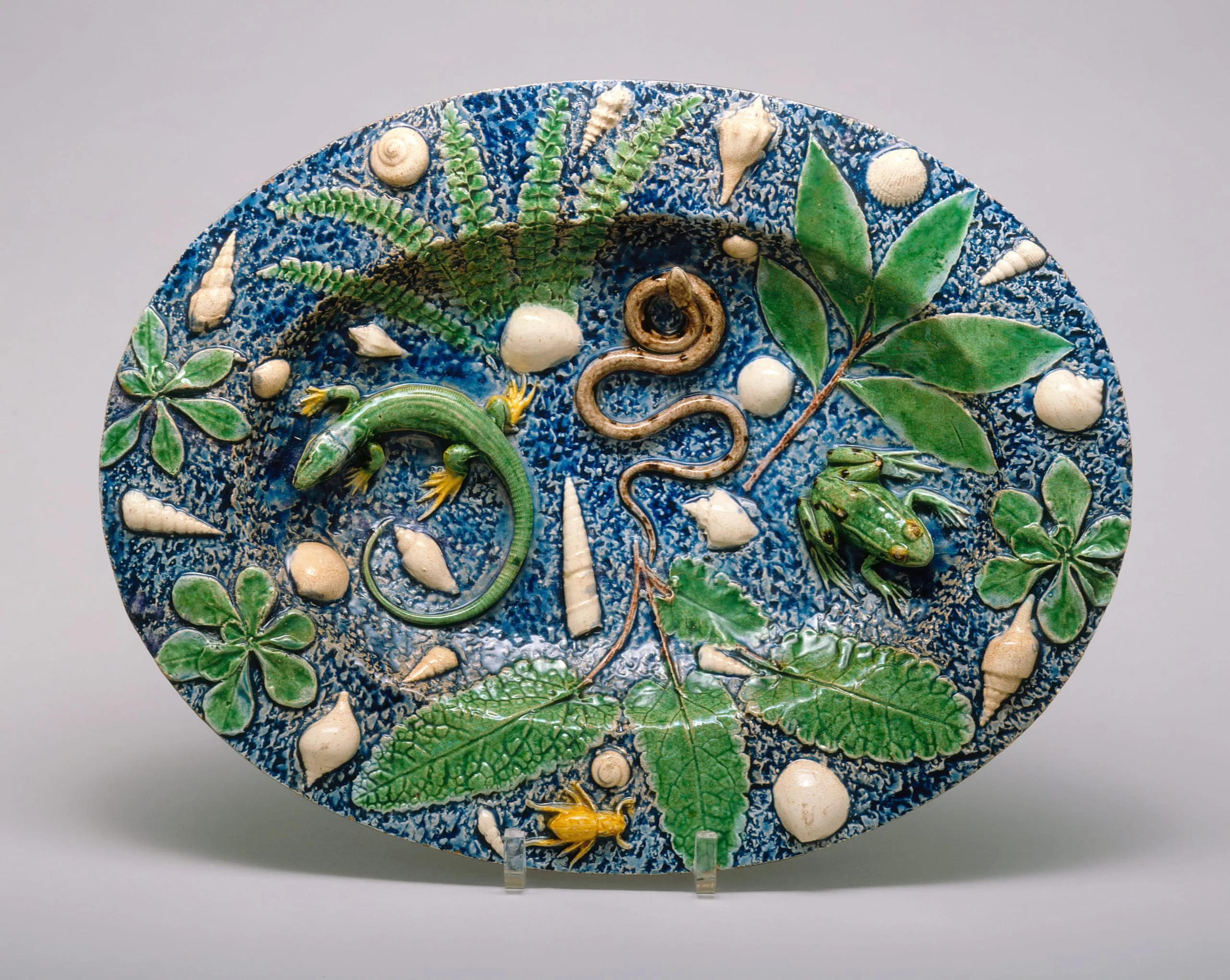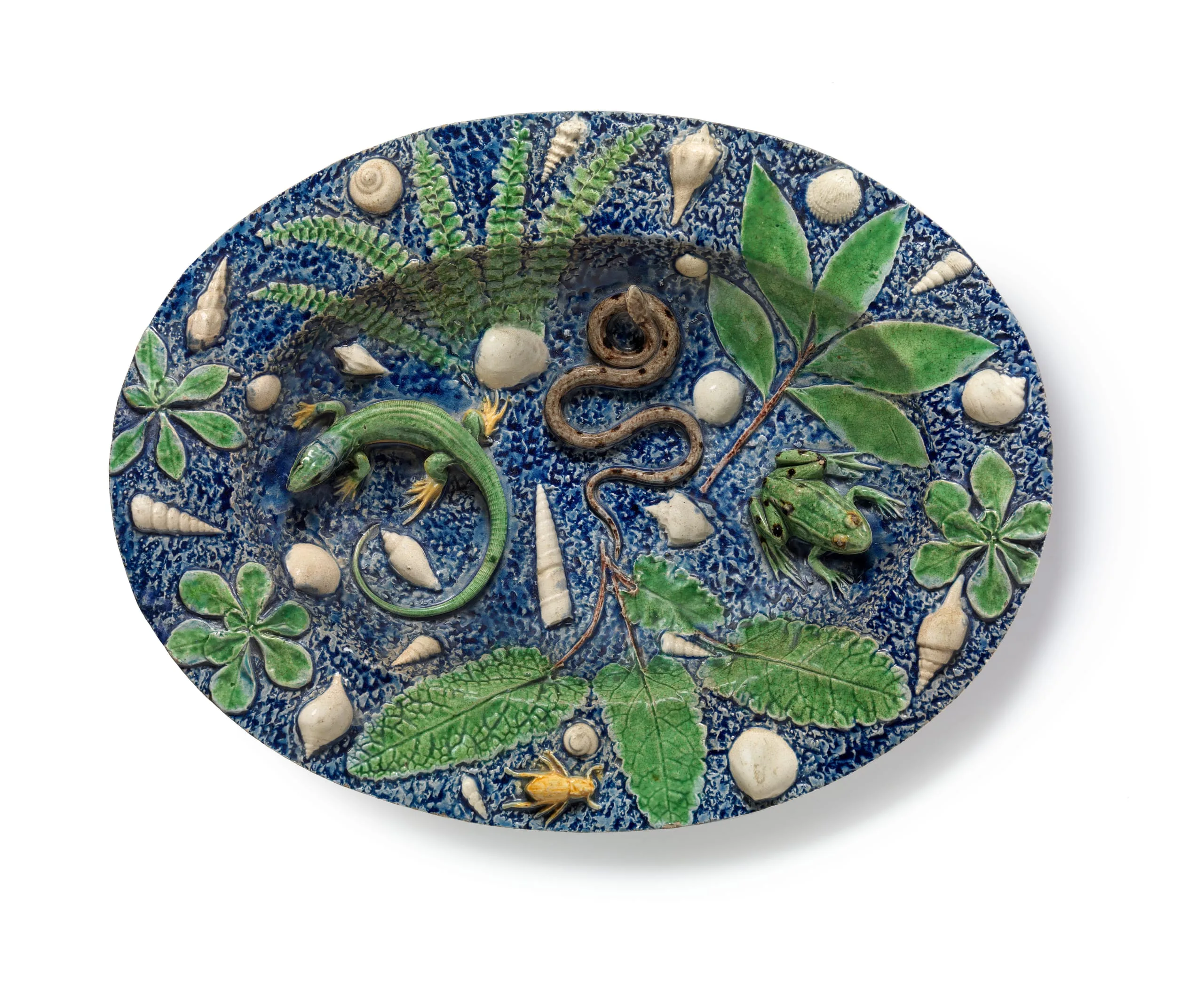 Oval Rustic Dish with Shells and Reptiles