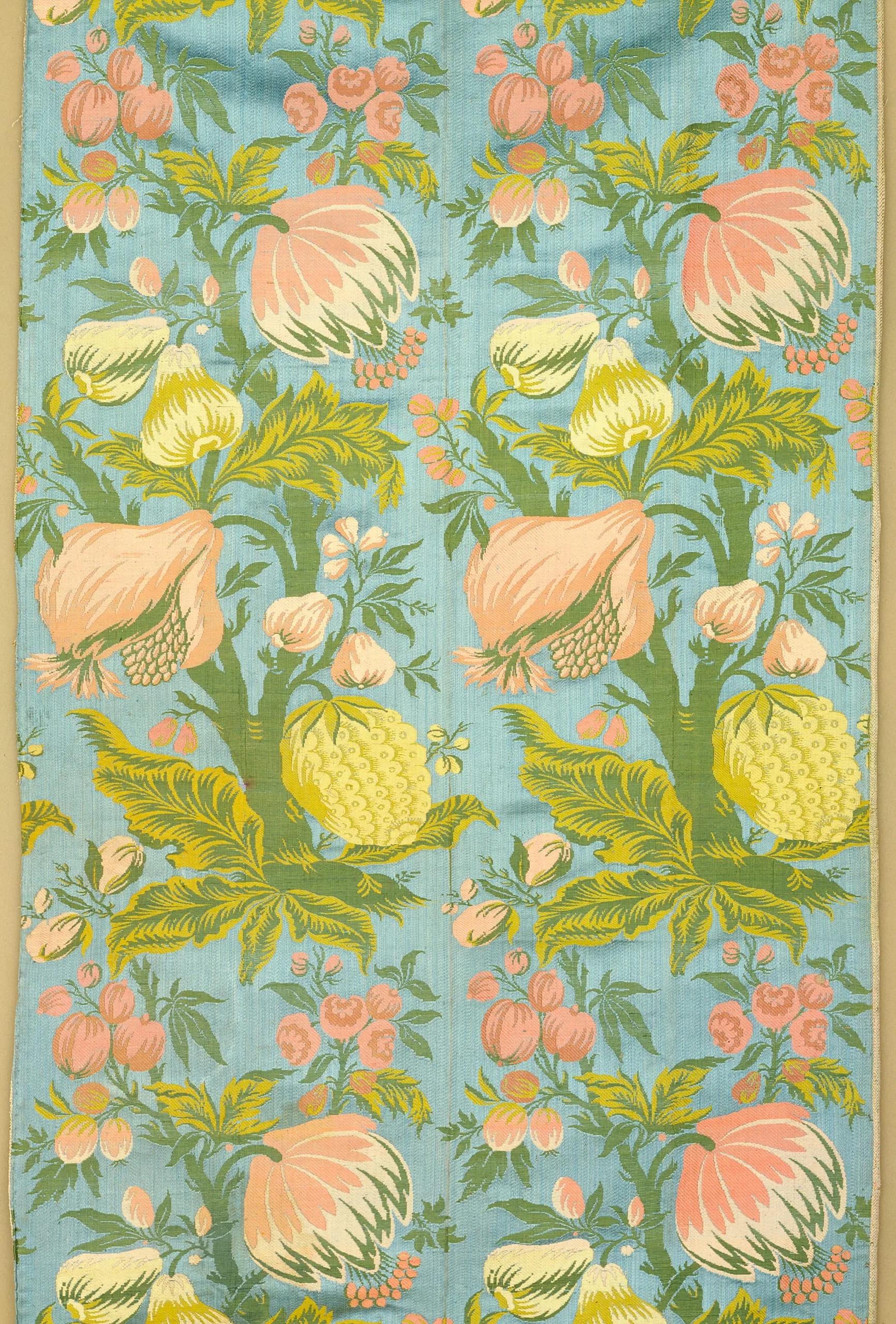 - Silk satin with silk supplementary-weft patterning bound in plain weave (lampas) with silk supplementary weft-patterning and silk discontinuous supplementary-weft patterning (brocade).