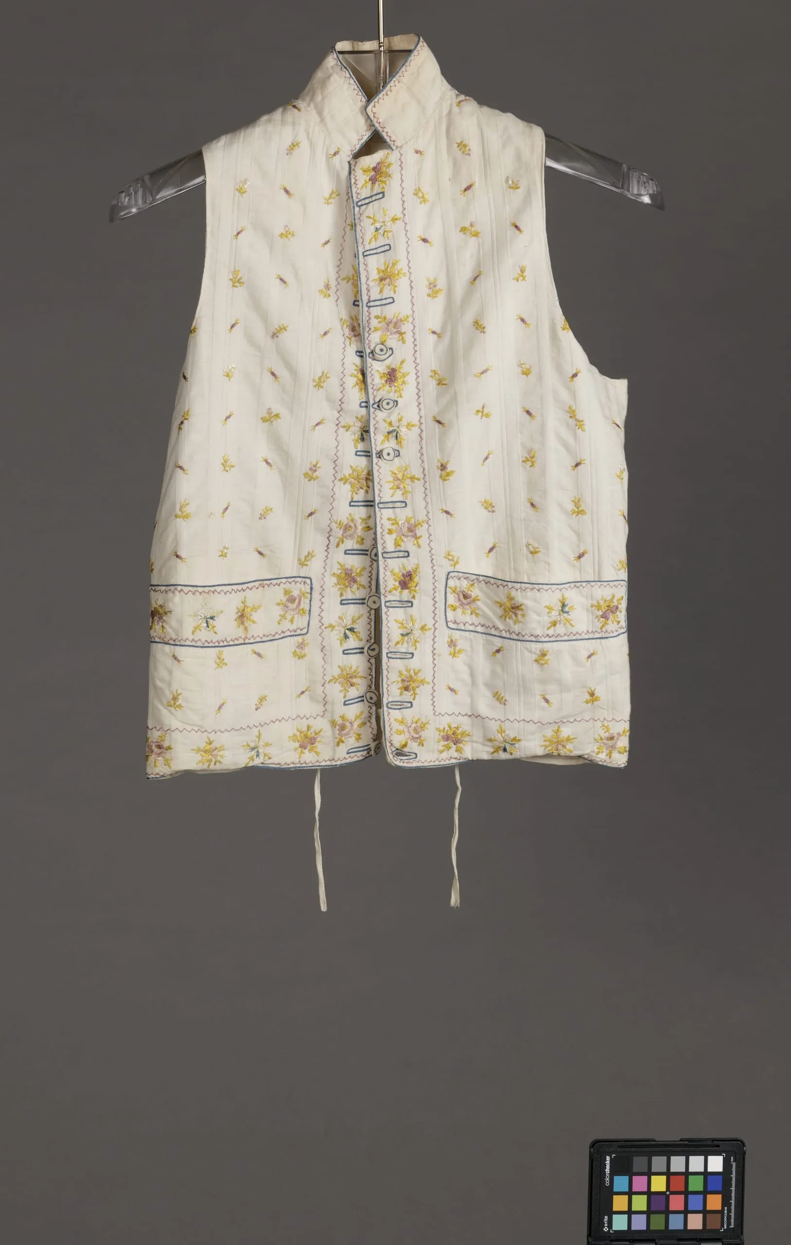 - Cotton plain weave with supplementary-warp patterning and silk embroidery