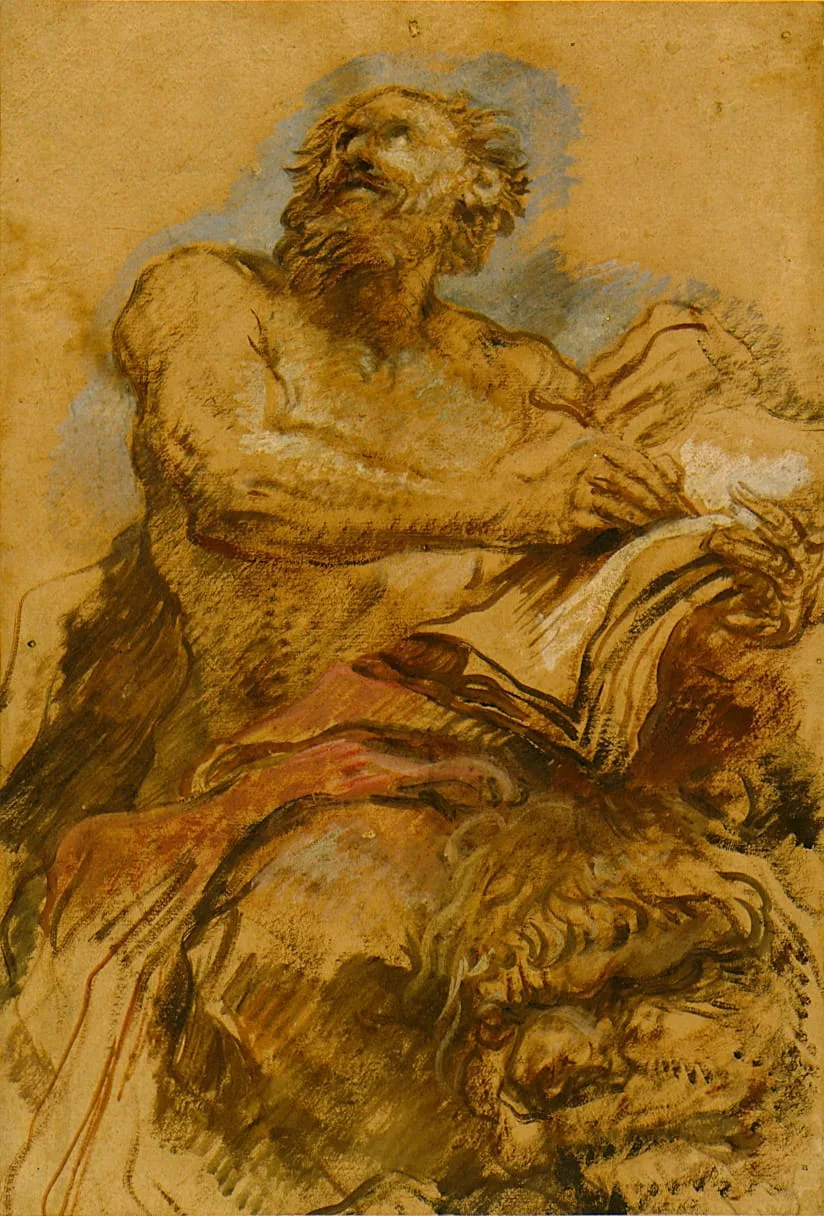 Giovanni Benedetto Castiglione is renowned as one of the master draftsmen of Italian baroque art. He perfected a classically ordered style like Nicholas Poussin's as well as a broad, fully baroque style in the manner of Peter Paul Rubens and Gian Lorenzo Bernini, artists whose works he knew. Castiglione also originated a distinctive type of drawing, with oil pigments on paper, in which he developed an expressive personal style. By the time Castiglione drew St. Mark, his highly individual approach made his drawings as satisfying as finished works, even though, as here, they might be studies for paintings.