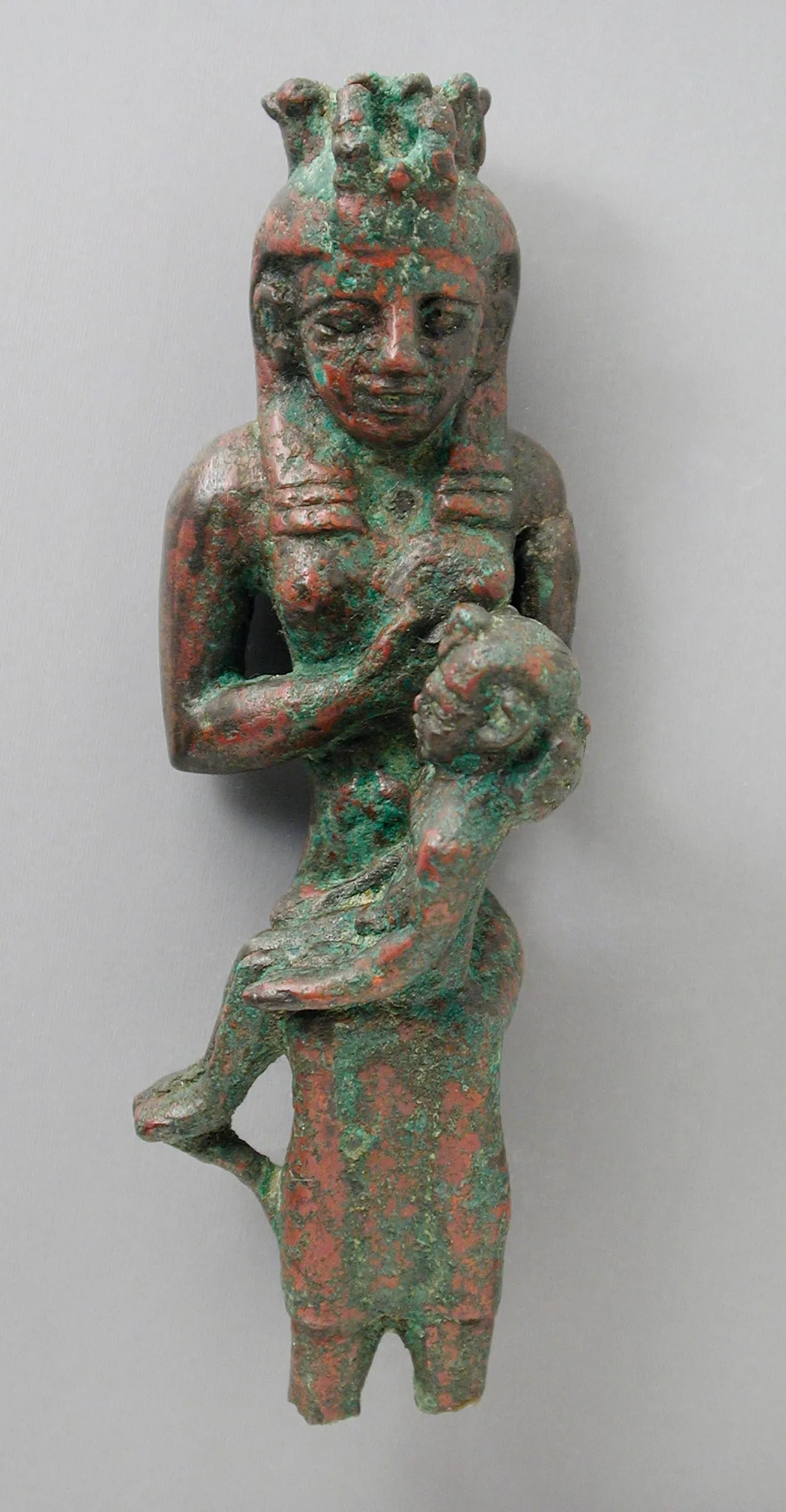 - Seated Isis with Uraeus Modius Holding Child on her Lap