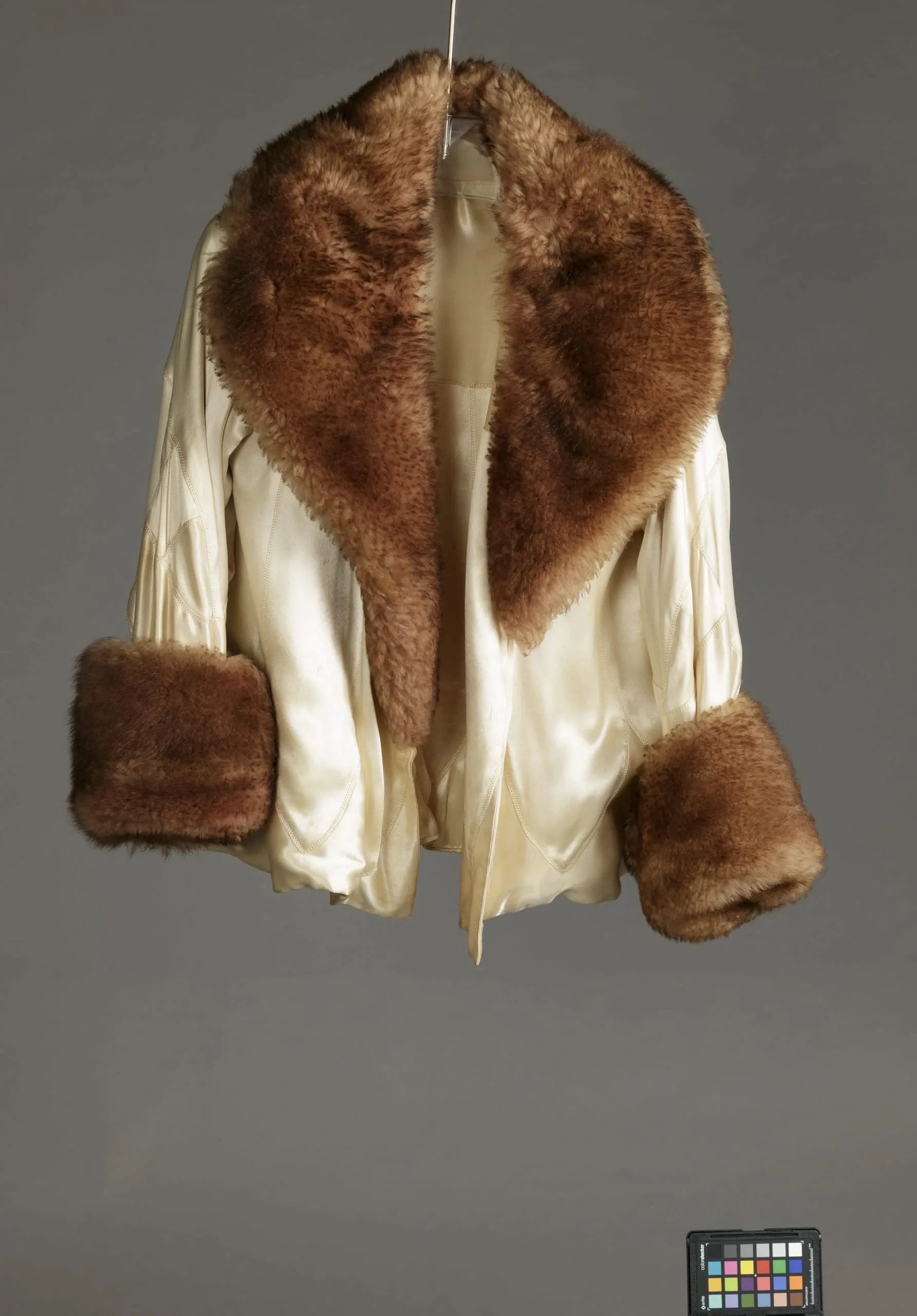 - Silk satin, with mouton-processed lamb, dyed