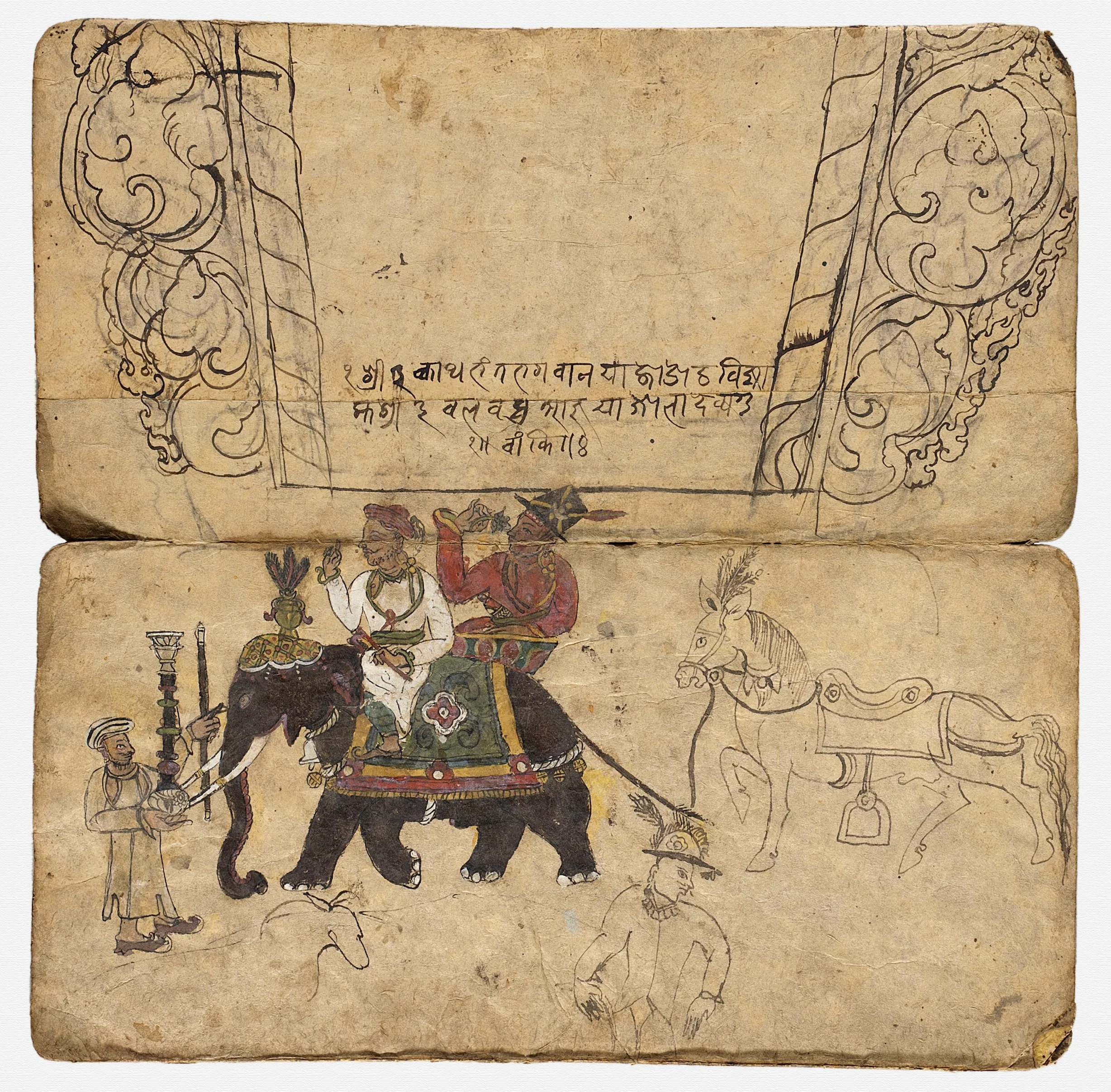 - Ink and opaque watercolor on paper