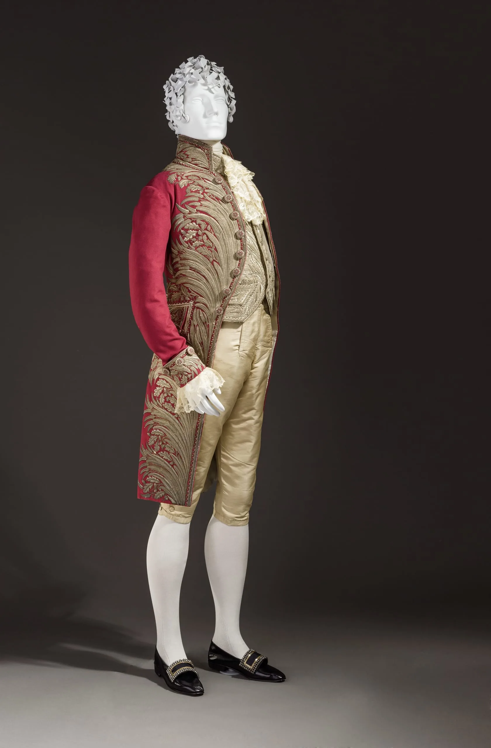 - A) Coat Center back length: 43 in. (109.22 cm); B) Waistcoat Center back length: 22 1/2 in. (57.15 cm)