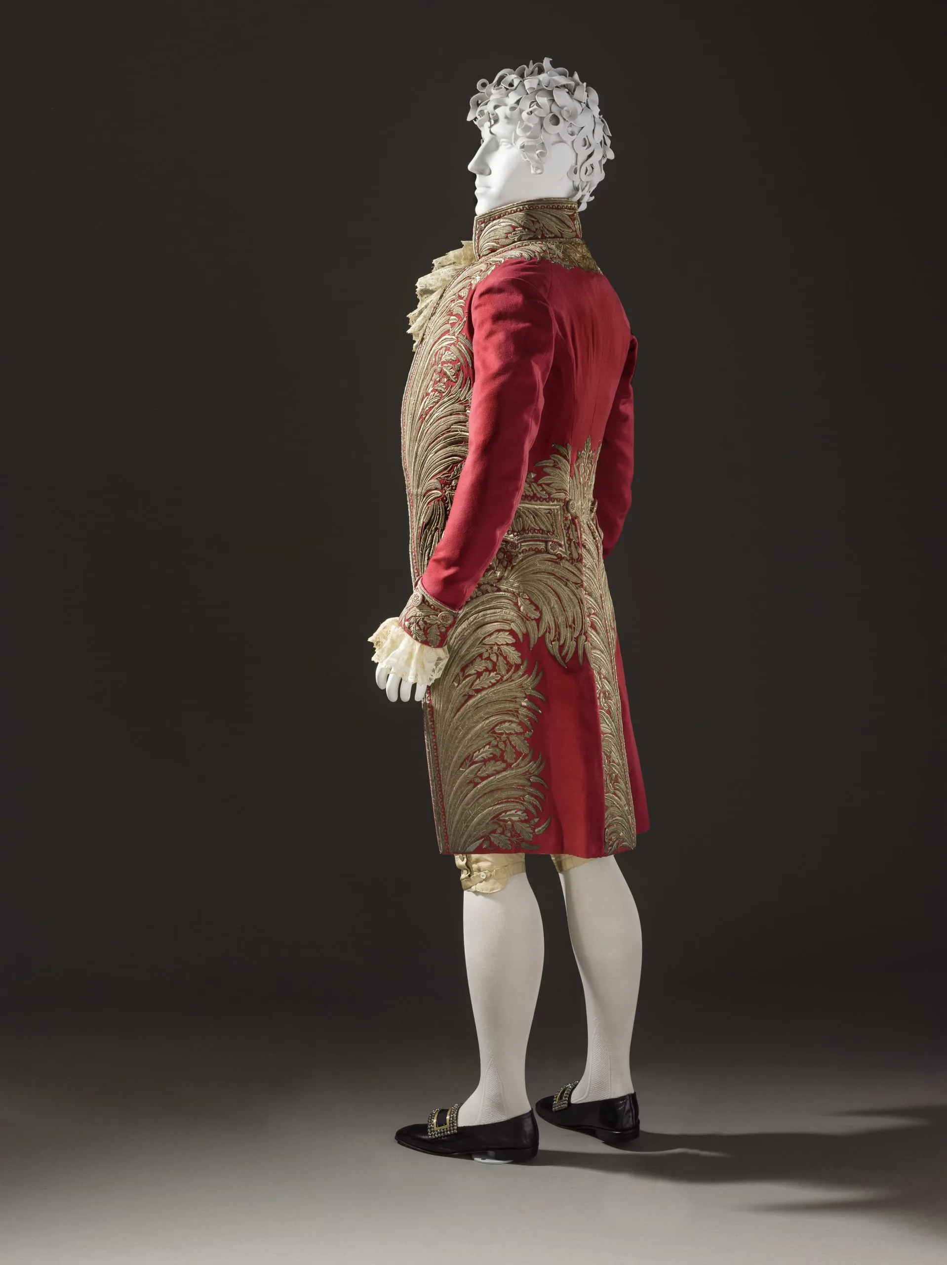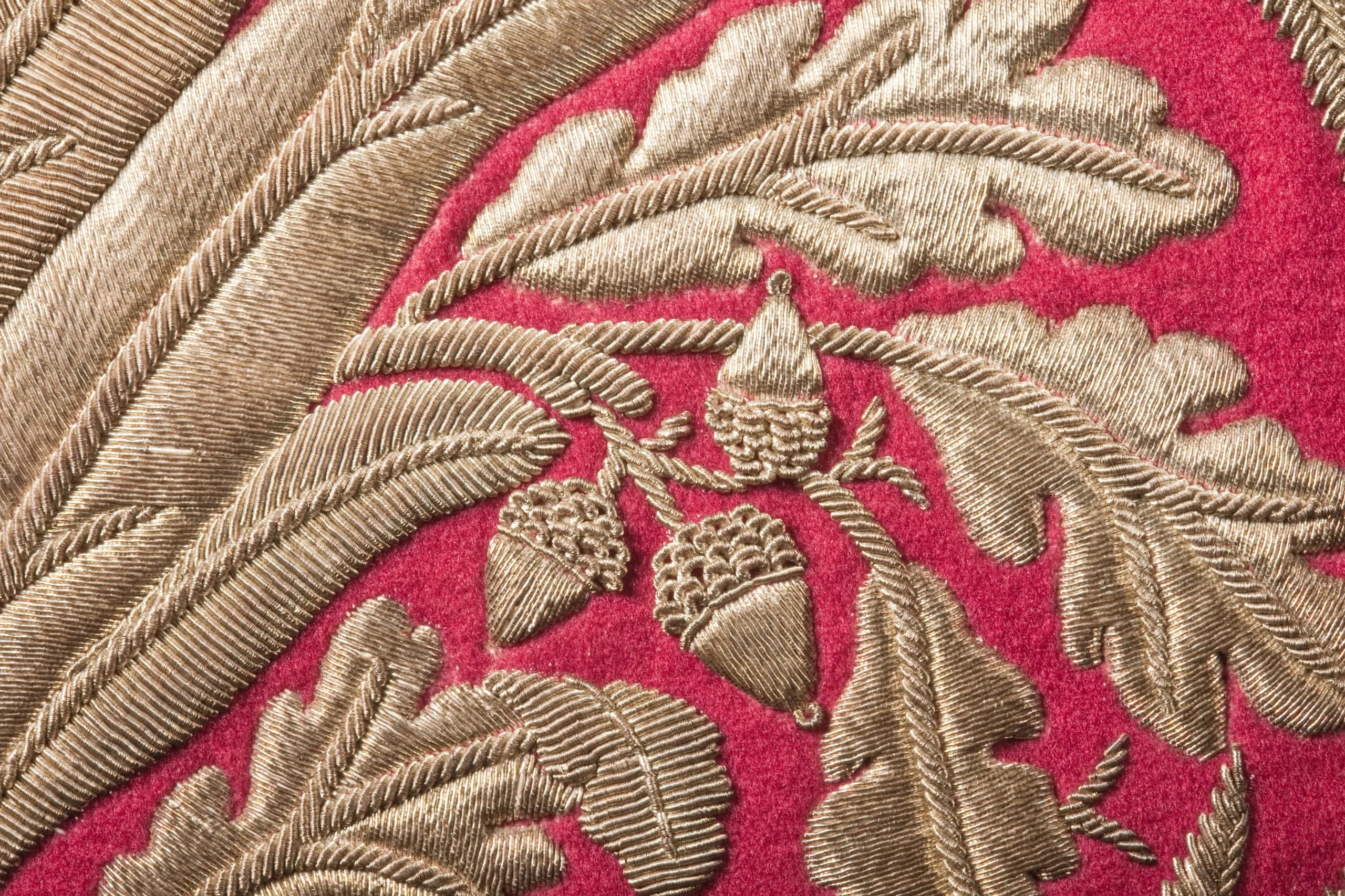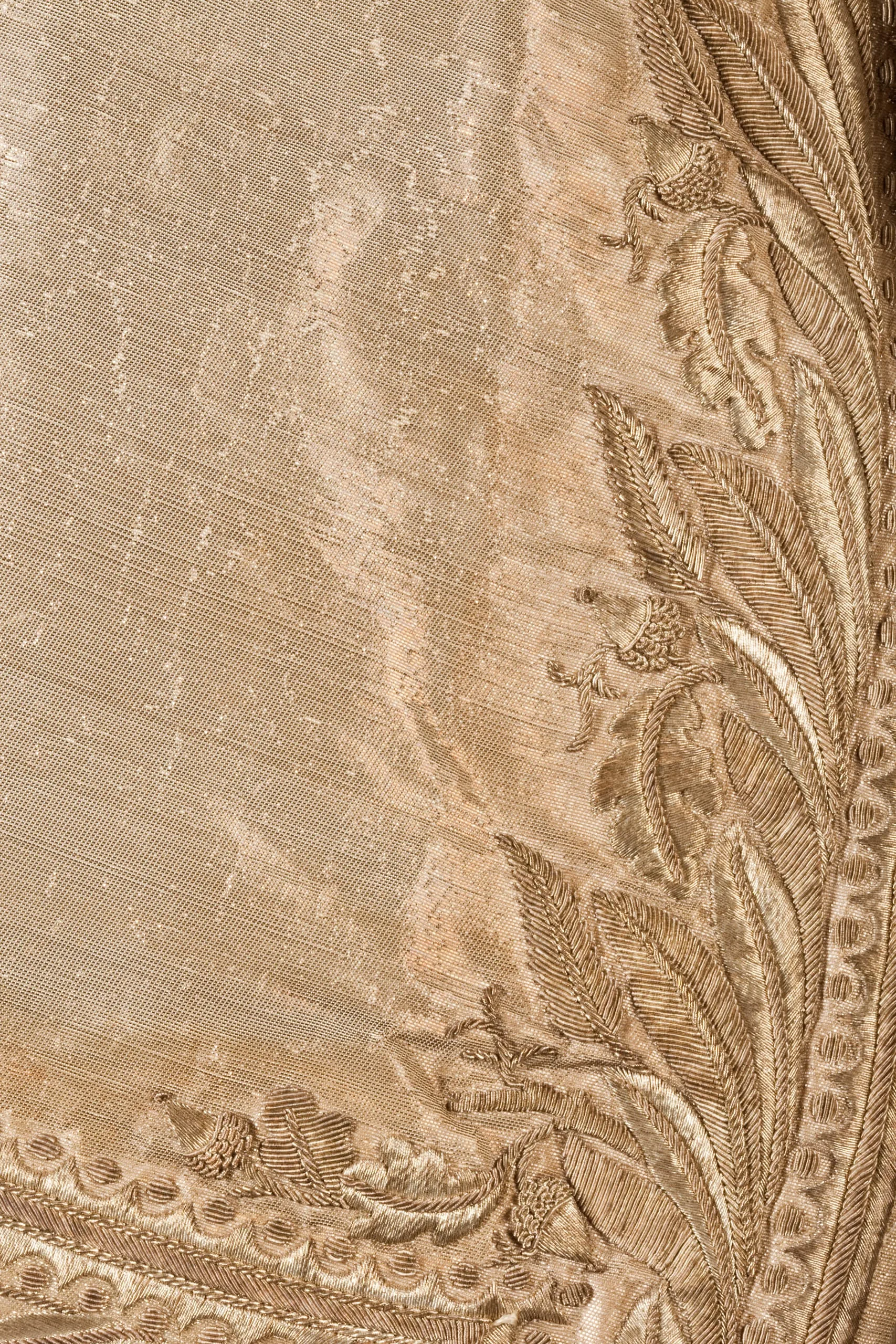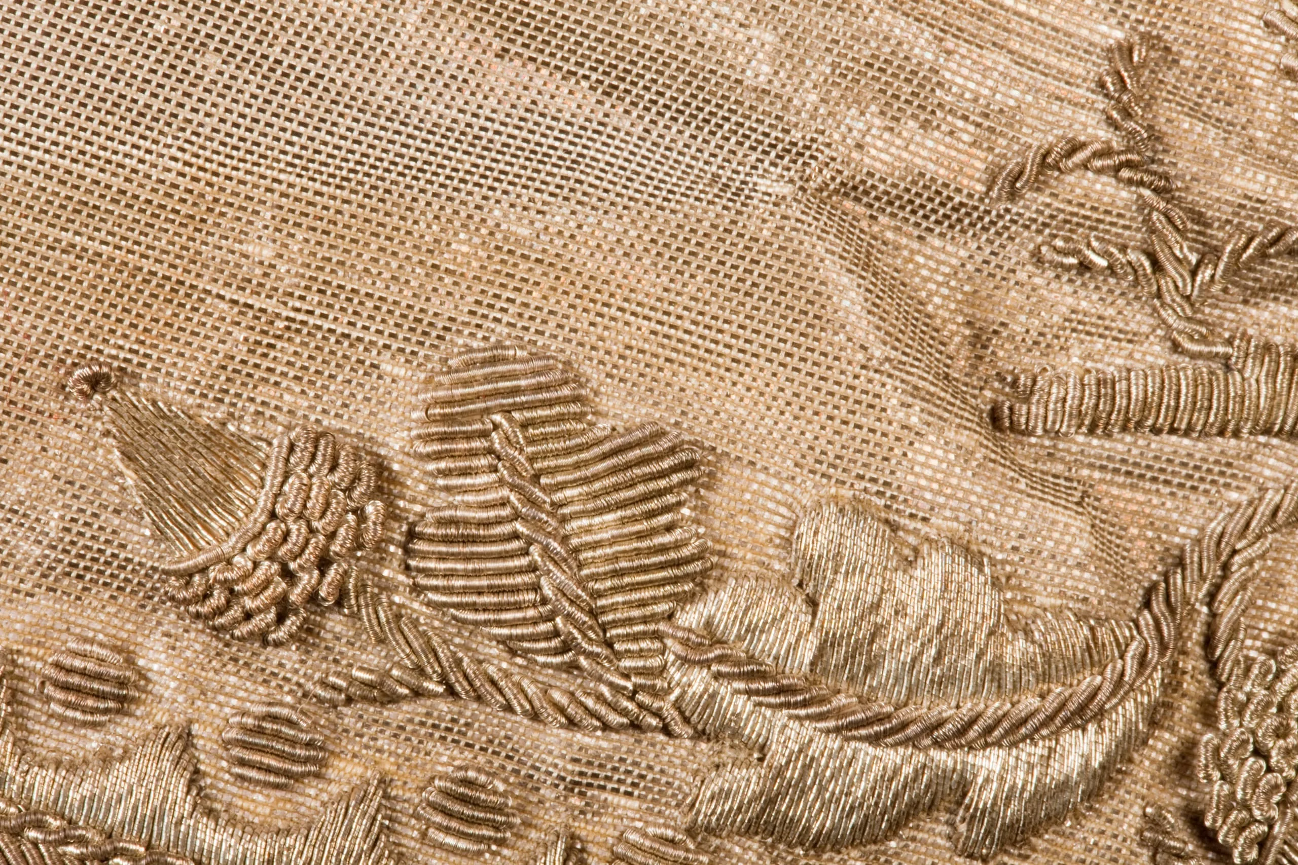 - Coat: wool plain weave, full finish, with metallic-thread embroidery