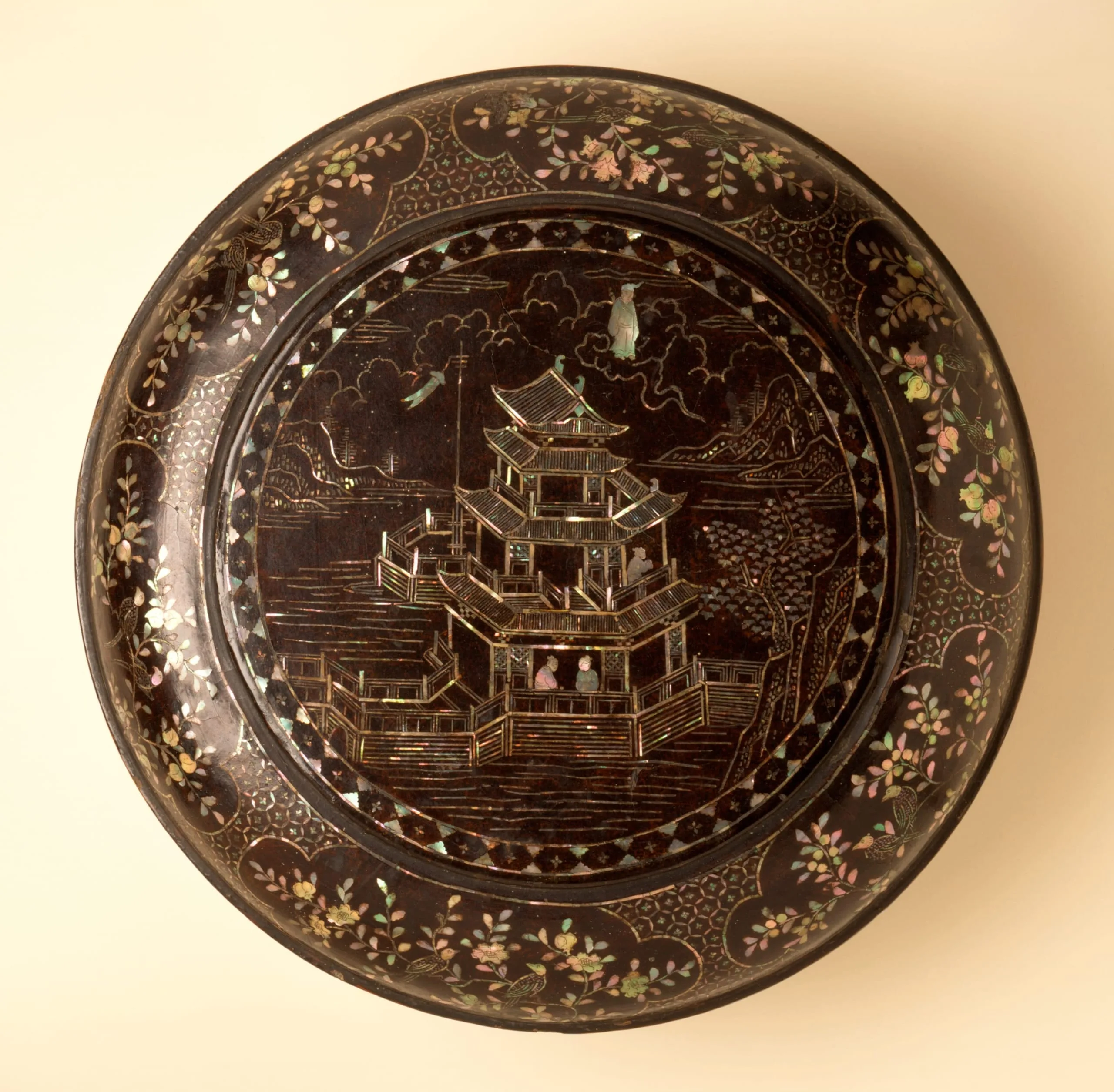 - Food Box (He) with Flowers and Cartouches Showing Figures in Landscapes