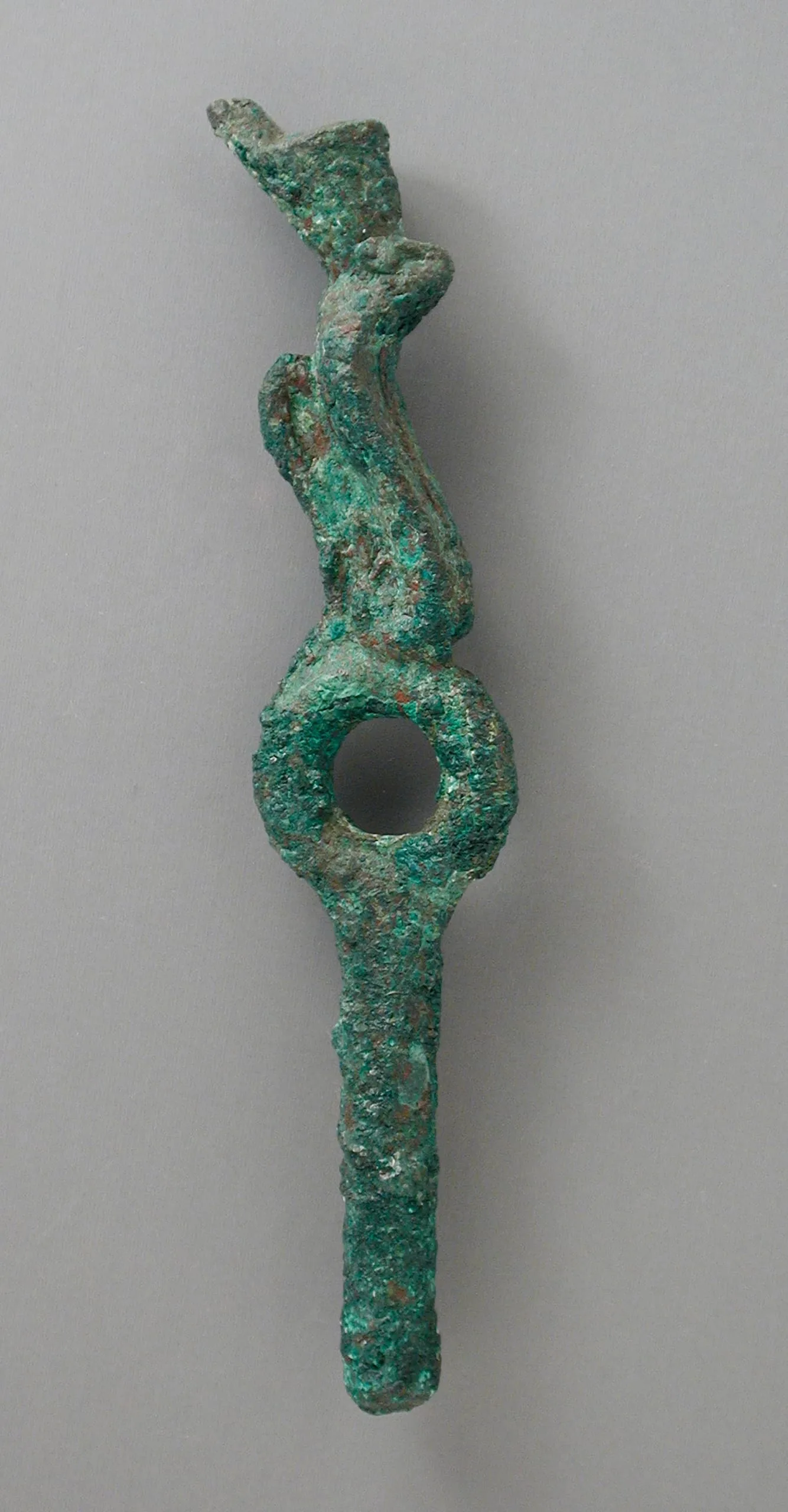 Bronze Ringed Element with Crowned Uraeus Figure