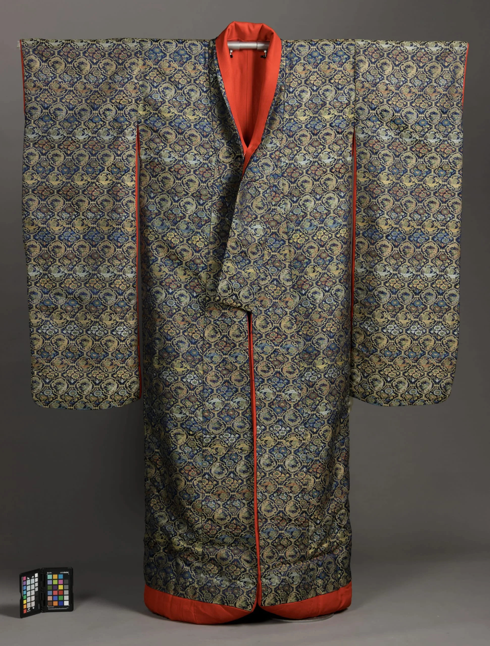 - Young Woman's Outer Kimono (Furisode Uchikake) with Linked Dragon Medallions with Springs of Flowers